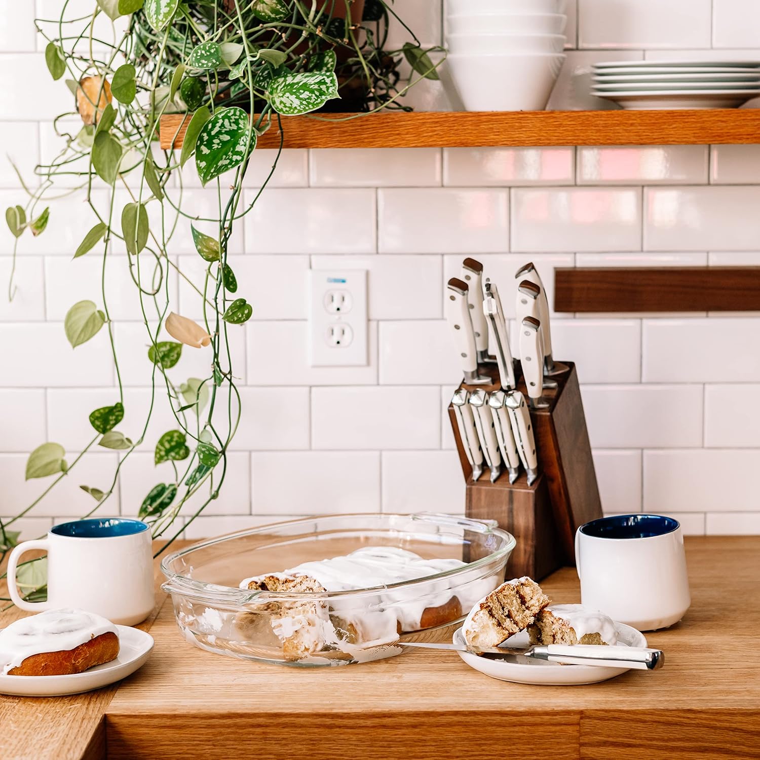 - Set Includes: 1x 8" Chef Knife, 1x 8" Bread Knife, 1x 8" Slicing Knife, 1x 5" Utility Knife, 1x 3.5" Paring Knife, 4x 5" Steak Knives, 1x Shears, 1x Acacia Block