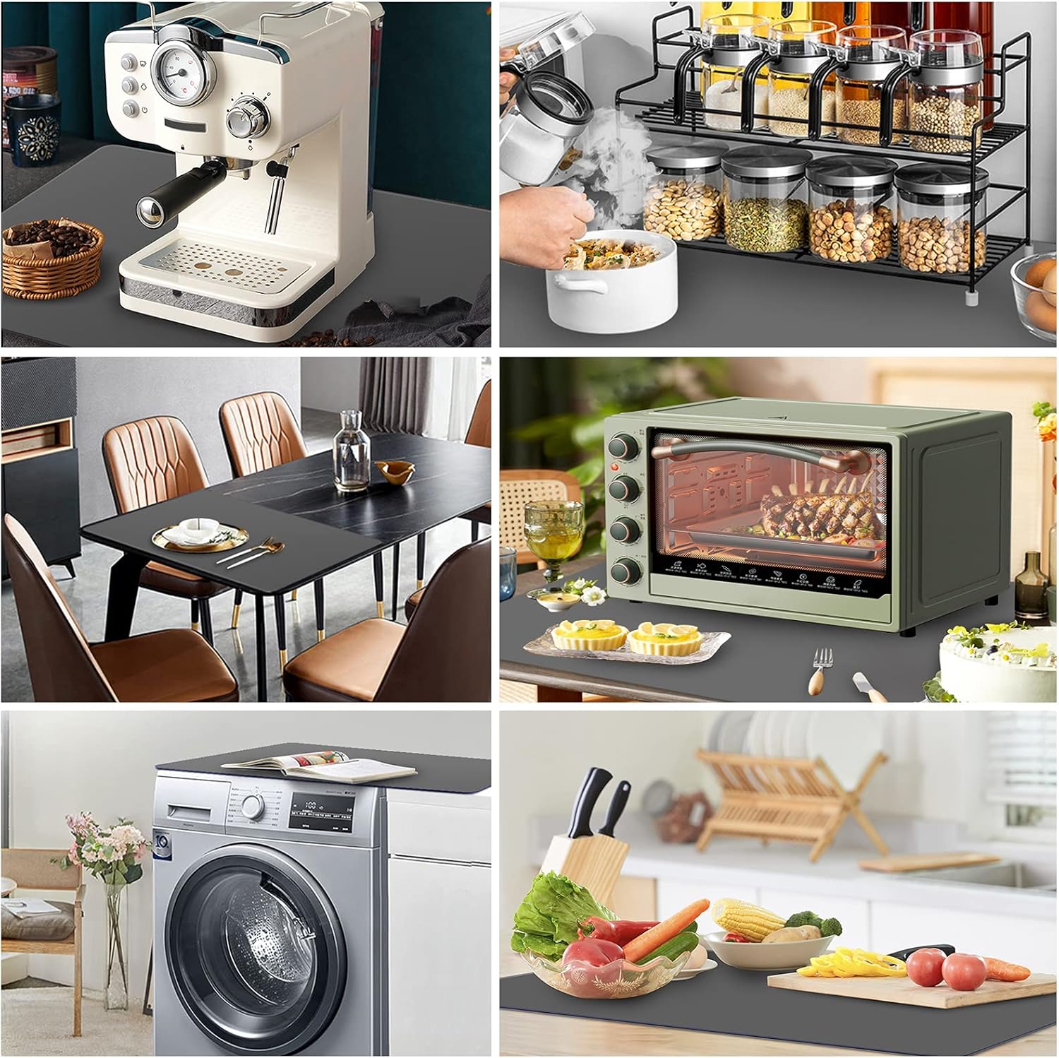- You Canβt Go Wrong with It: This placemat can solve multiple problems. Great for catching messes. Protect counters from spills, scratches, grease, coffee stains, or damage. Place hot items of all sizes directly on the mat without having to dig through the drawer for a hot pad and no more need for trivets. Reduce the noises made by appliances. No need to worry about items slipping off the countertop. Tools will keep in place. Even if you are rolling dough hard on it, the mat won't slide