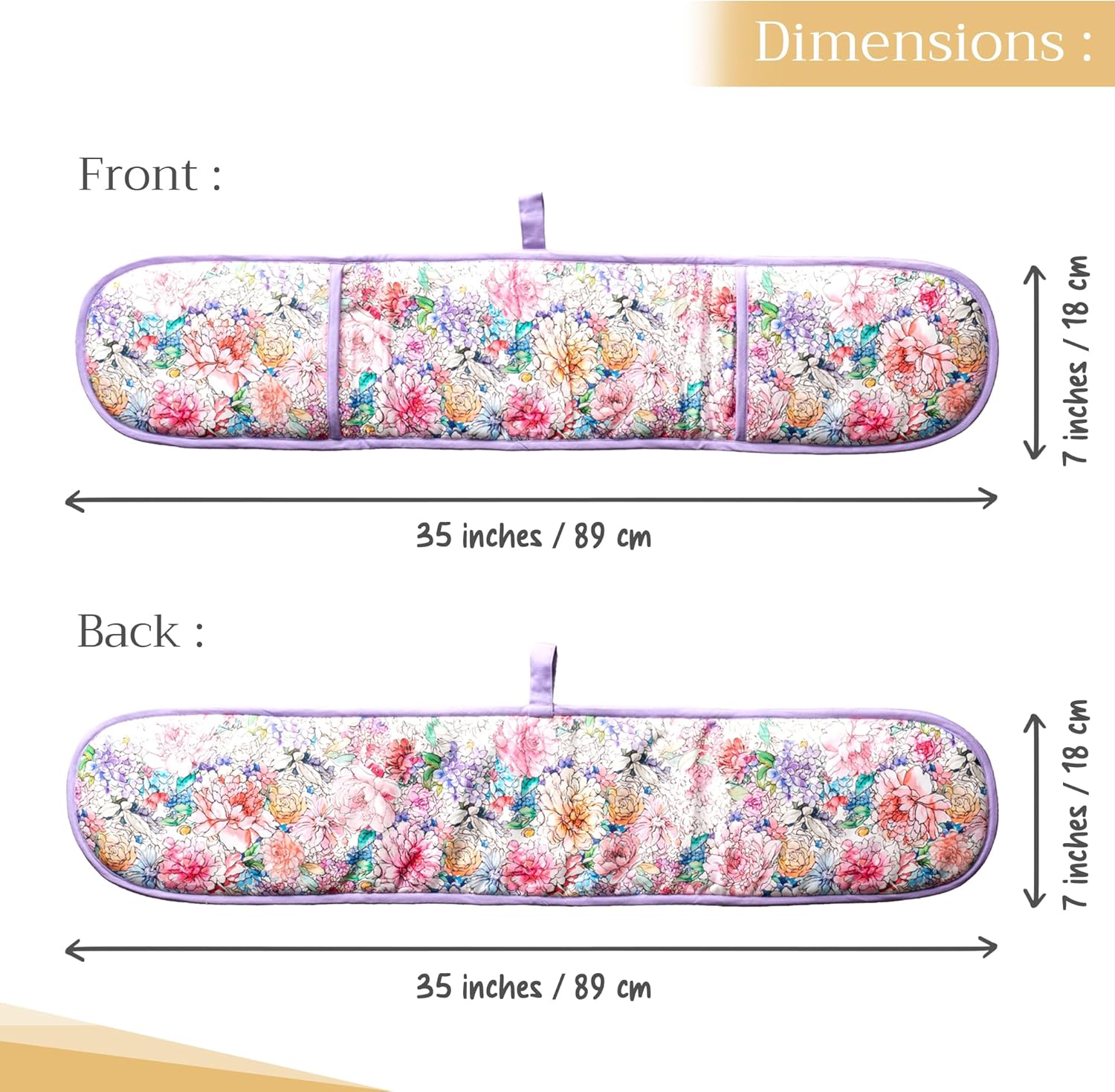 Maison d' Hermine Double Oven Mitts 100% Cotton 7"x35" Double Oven Mitt Heat Resistant BBQ Cooking Gloves with Loop, Baking, Grilling, Home, Kitchen, Handling Hot Pans Spring Summer (Floral Love)