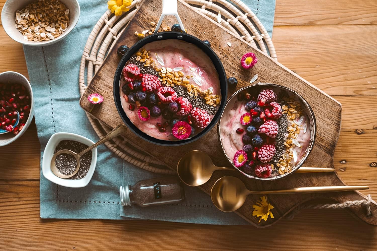 - COOKING LOW IN FAT: Say goodbye to smoke-filled kitchens and enjoy a clean, healthy cooking experience, cleaning up after a meal has never been simpler, thanks to the induction sauce pan's non-stick surface that easily wipes clean and ensures even the stickiest, messiest dishes like corn cakes and cheesy bakes slide right off with ease