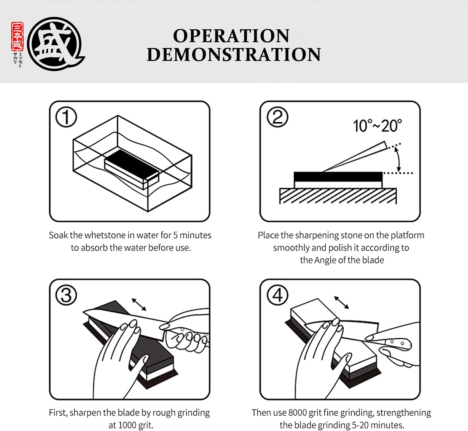 - DOUBLE-SIDED SHARPENING STONES: Whetstone knife sharpener comes with a double-sided (1000/3000 grit) multi-purpose restorative Japanese sharpening stone. Double sided whetstones repair dull, sharpen and polish chef's knives