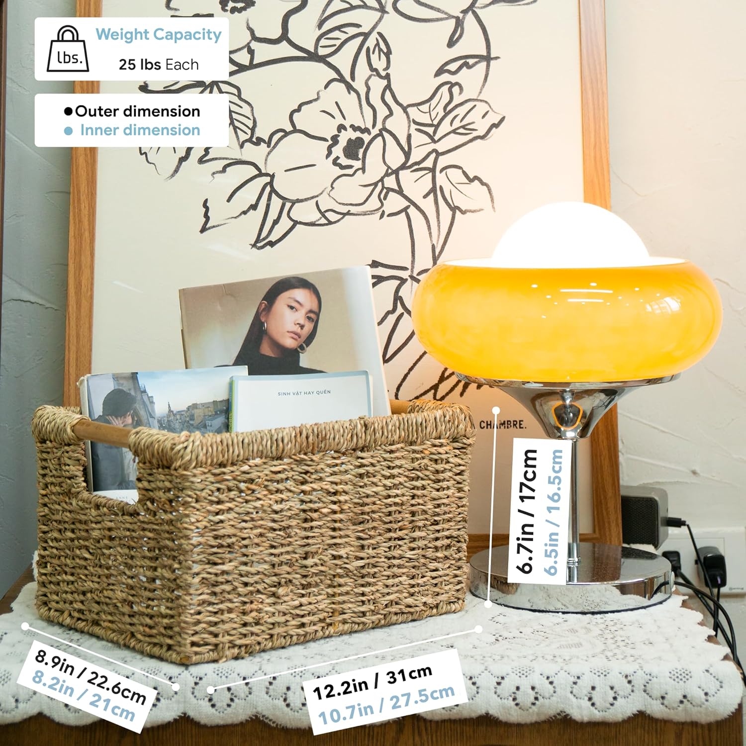 - ā Natural & High Quality - Our wicker storage baskets for shelf are made of Seagrass, was carefully handcrafted to perfection. It comes with an iron frame for sturdy storage. The wooden handles on both sides are not only pretty but to help you easy to carry the wicker basket.