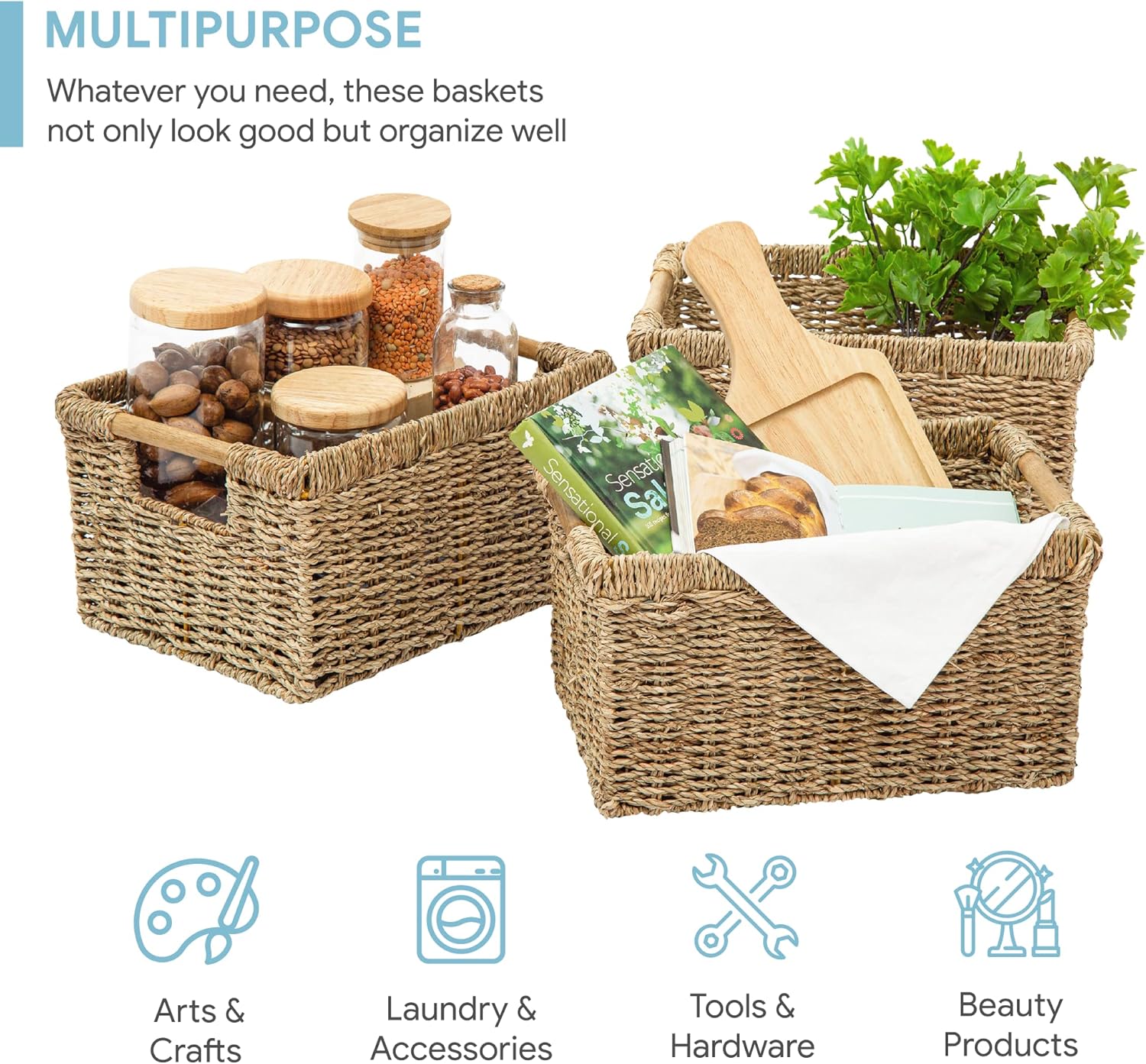 - ā Ideal For Home - Natural seagrass baskets are an easy and affordable way to change the style of your home, and is a great way to make a difference by promoting a sustainable lifestyle. With their natural design, these baskets wicker make nice neutral backdrops and can brighten your day as well as impress your guests.