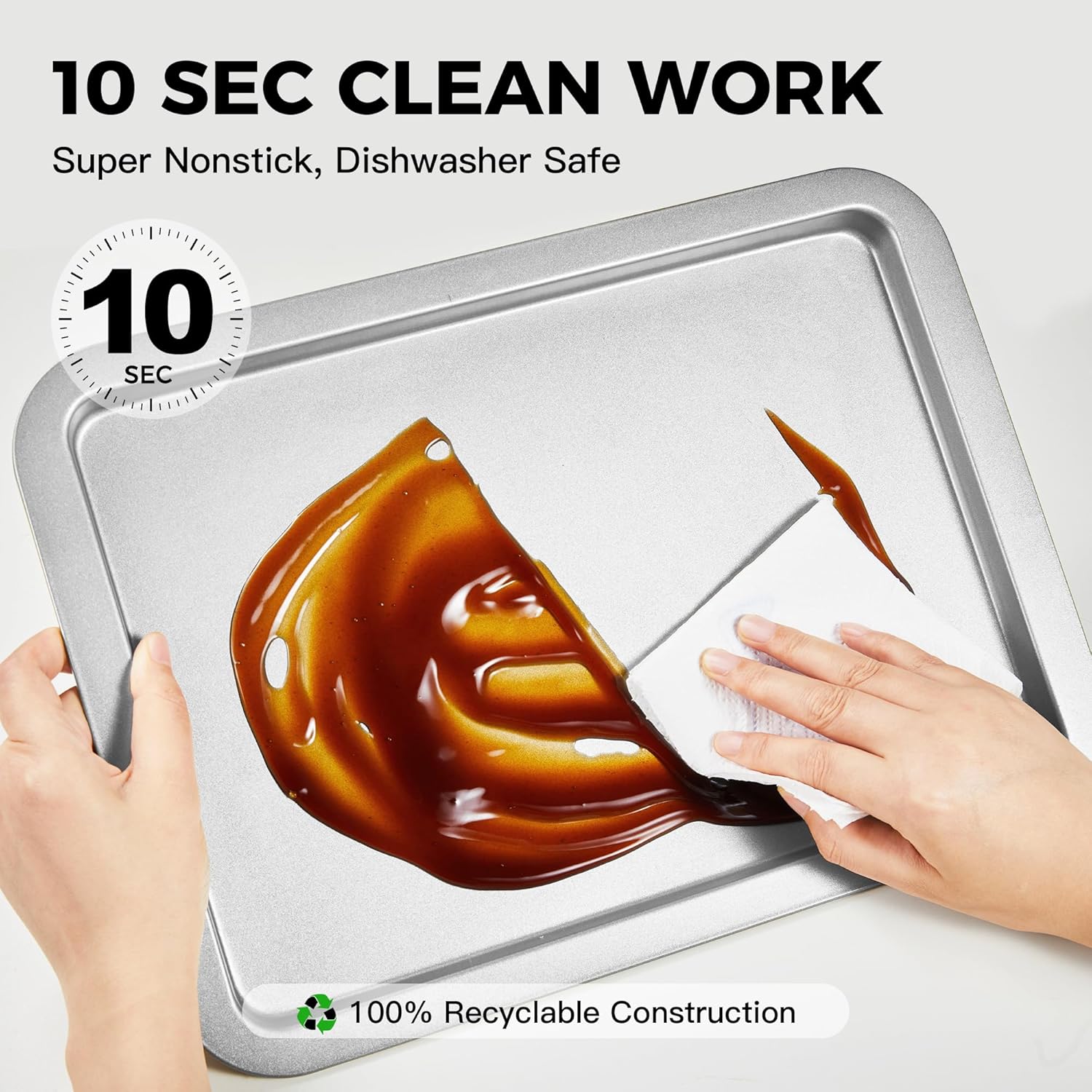 - 🍪SUPERIOR NONSTICK TECHNOLOGY - The baking pan set of 3 with high-quality Whitford non-stick coating and inner and outer protective layers to ensure the perfect release of food. Non-stick baking sheet set can be used safely at temperatures up to 450°F, with even heat distribution, anti-warping, and long-lasting baking properties