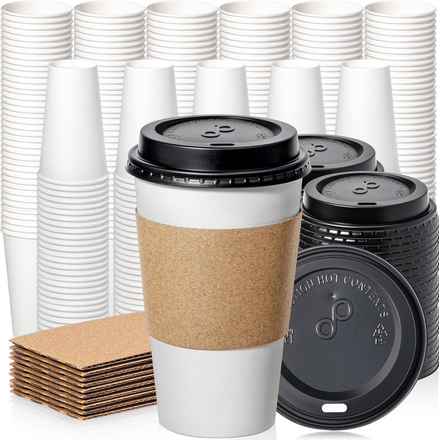 Fit Meal Prep 500 Pack 16 oz Disposable Coffee Cups with Lids, Sleeves, Leak-Proof To Go Coffee Cups with Lids, Durable Paper Cups for Hot Beverage, Home, Office, Party