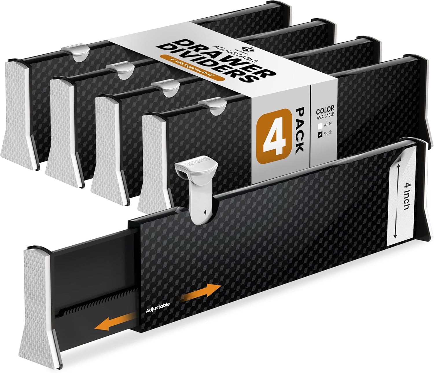 - Well-Designed Size: Includes 4 dividers, each 4 inches tall and expandable from 11 to 17 inches; customizable to fit most drawers and cabinets