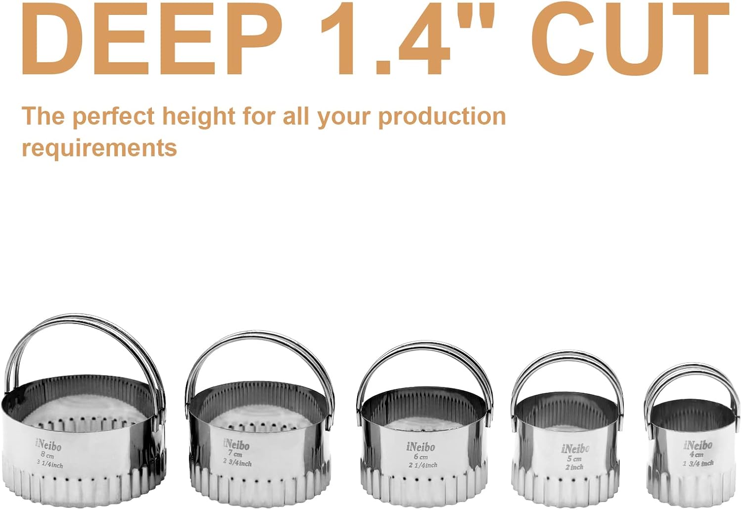 iNeibo Fluted Edge Biscuit Cutter Set - Round Circle Scone, Pastry, and Dough Cutters for Baking, Dumpling Skin, and Fondant