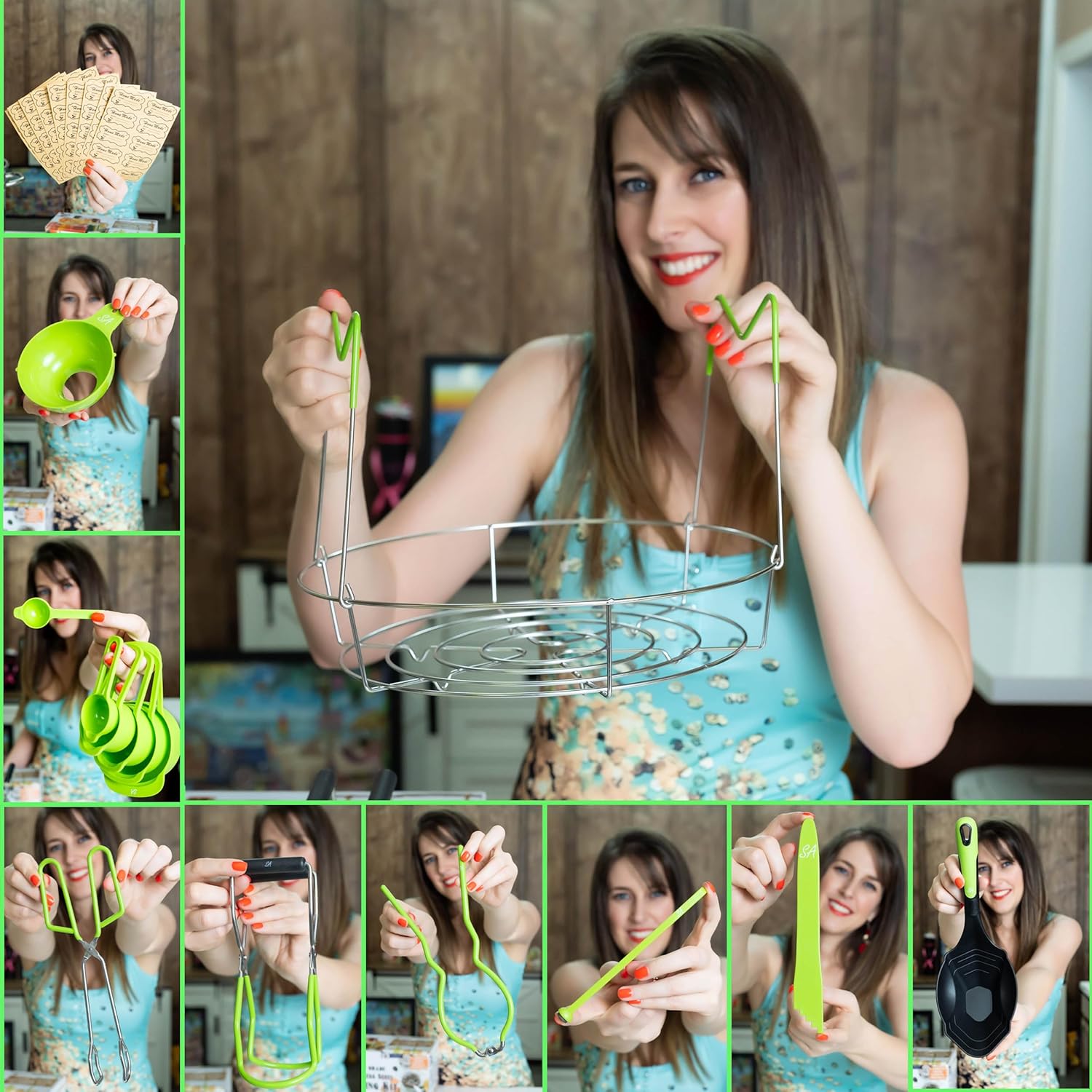Supa Ant Canning Supplies Starter Kit- Canner Accessories with Canning Rack for Jars, XL Ladle,Wide Mouth Jar Funnel,Jar Lifter and Wrench,Bubble Popper/Measurer,Lid Lifter,Kitchen Tongs (Light Green)