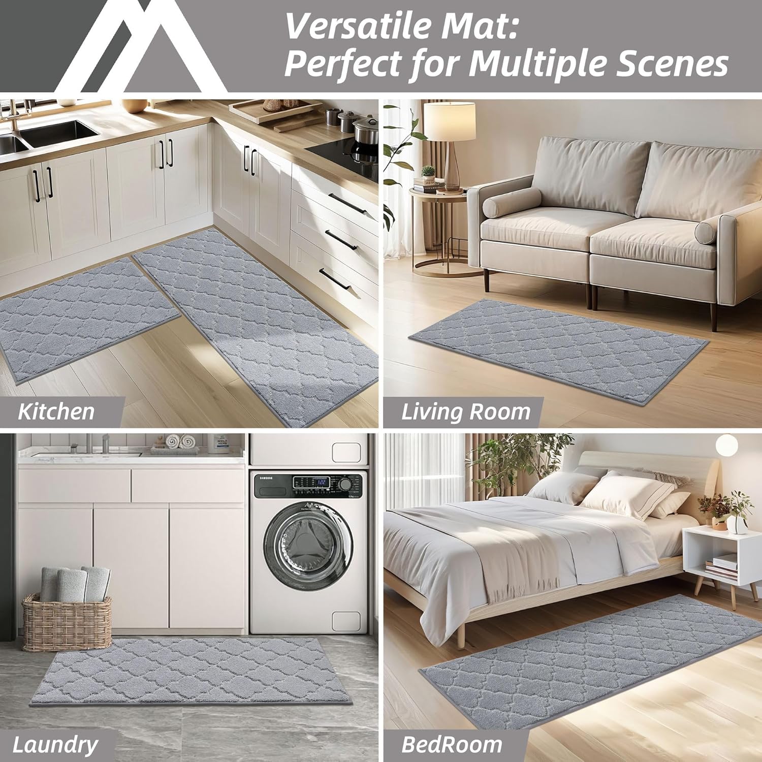 - Super Absorbent: The floor mat is made of polyester, which is durable and the surface is not easy to get dirty. It can perfectly absorb the water splashed by kitchen cooking and dining