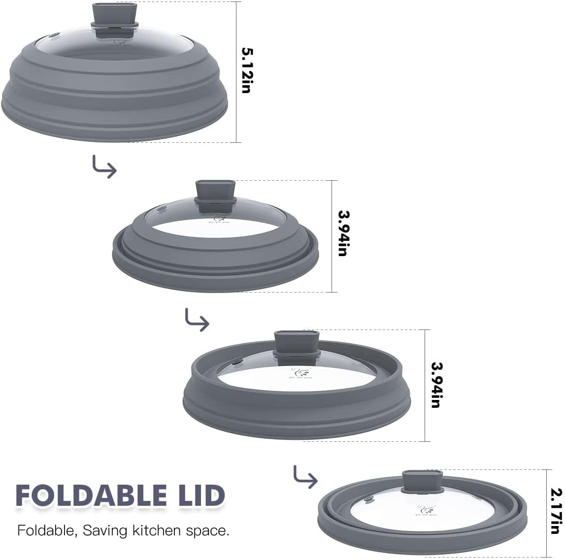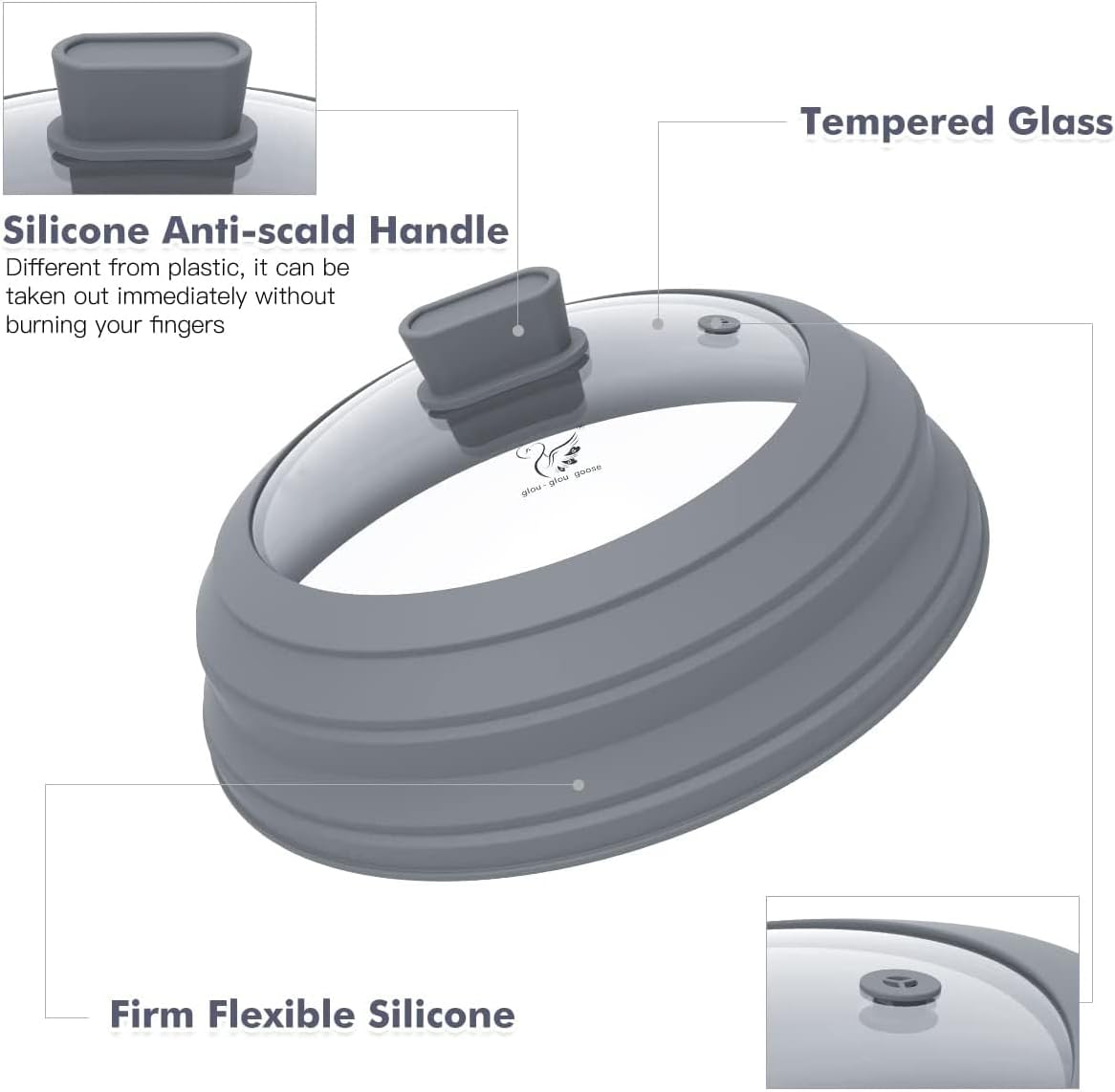 Microwave Splatter Cover Glass Splatter Guard Lid with Collapsible Silicone for Food Pot Plate Cover 11.8 inch Light Grey