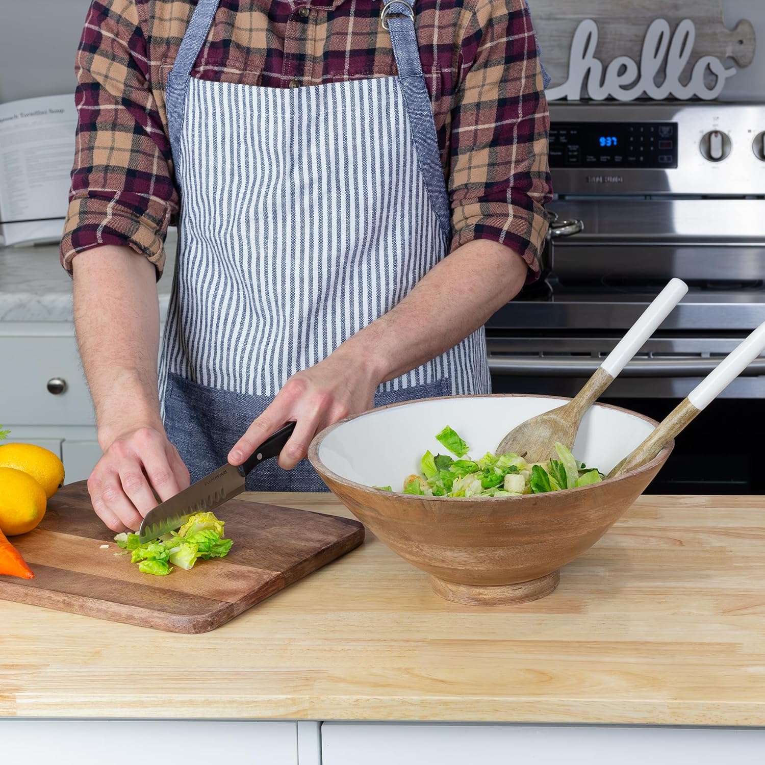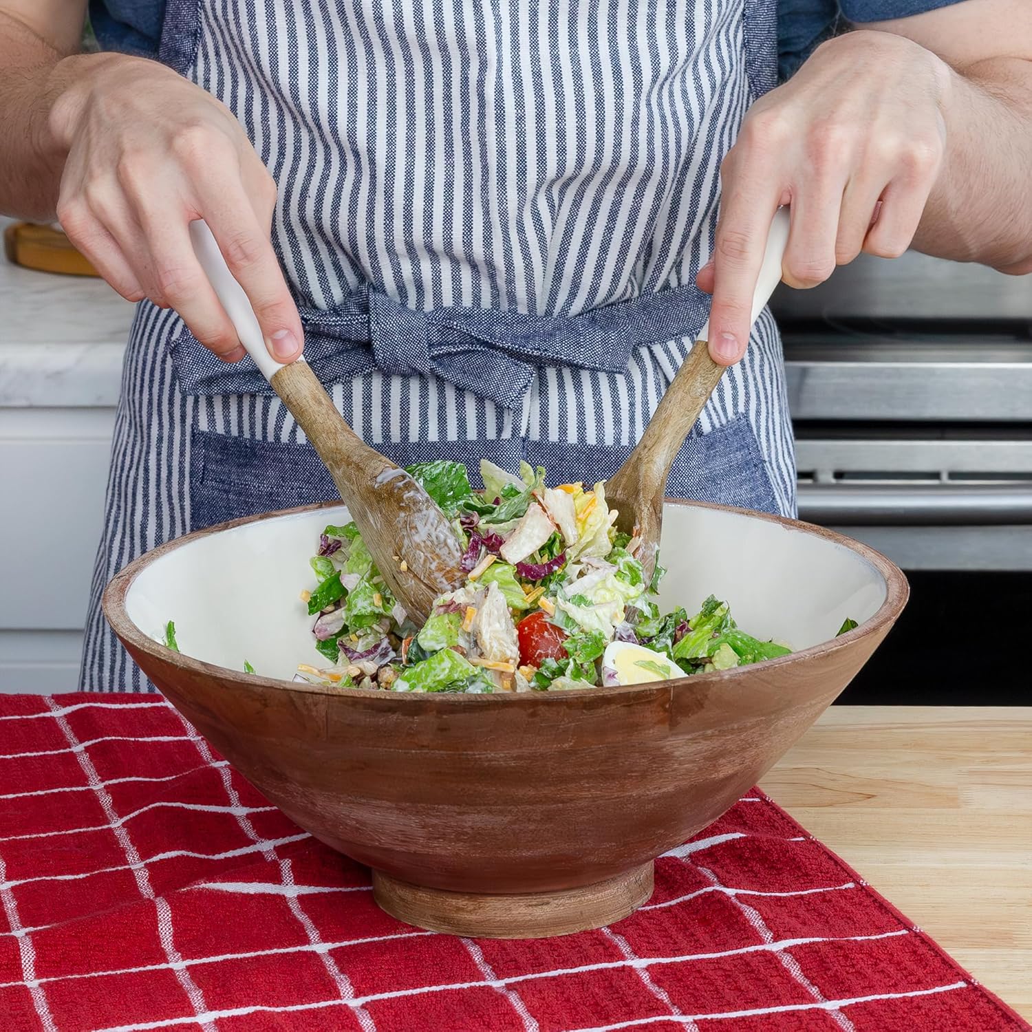 - Size: Bowl: 12x12x4.875; Salad Servers: 10 inches long