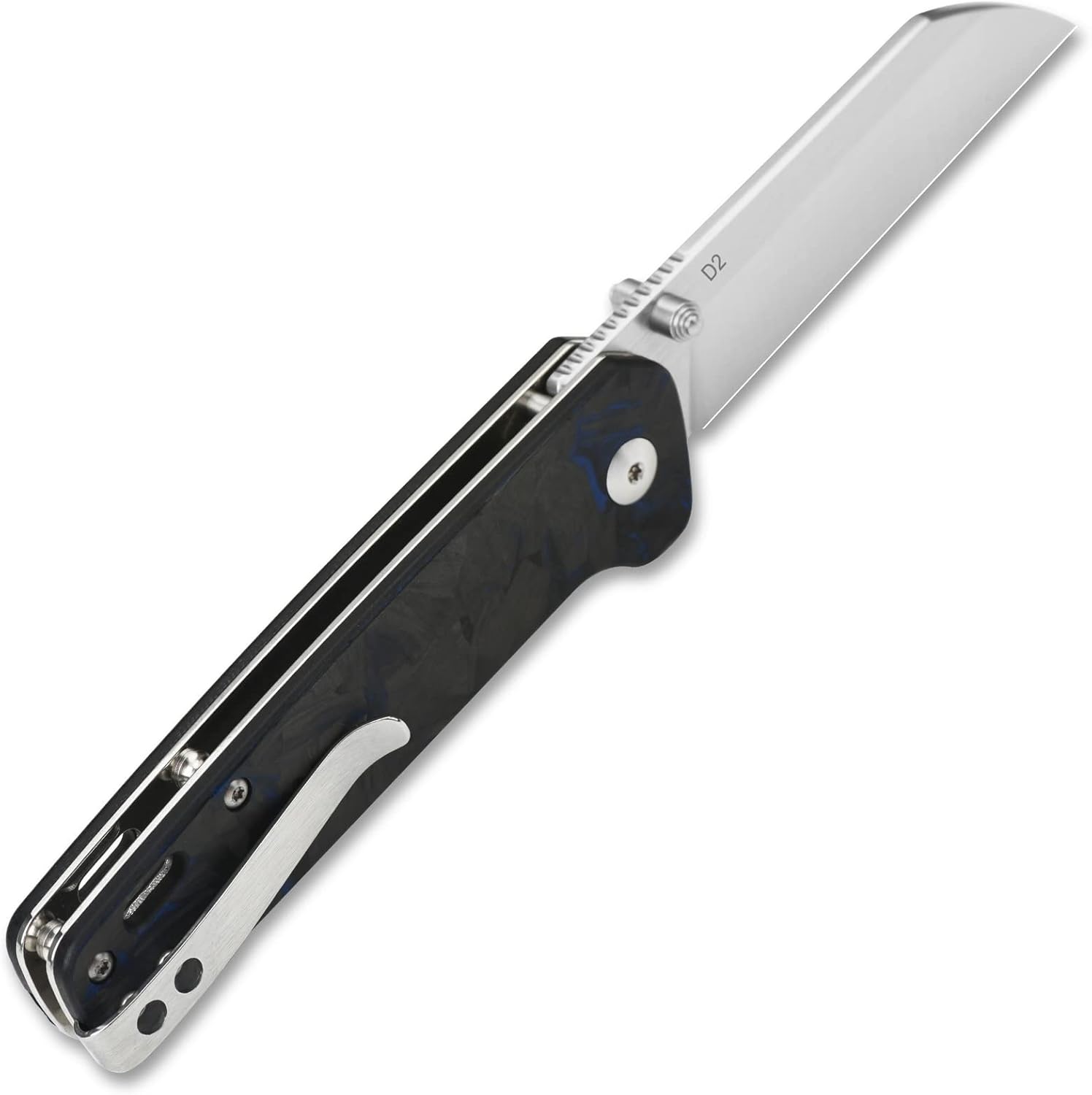 QSP Penguin Folding Pocket Knife – Rugged D2 Blade EDC Knife – Premium Micarta Handle – Smooth One-Hand Open – Deep Carry Clip – Left/Right-Handed Friendly (Blue Shredded Overlay Black)