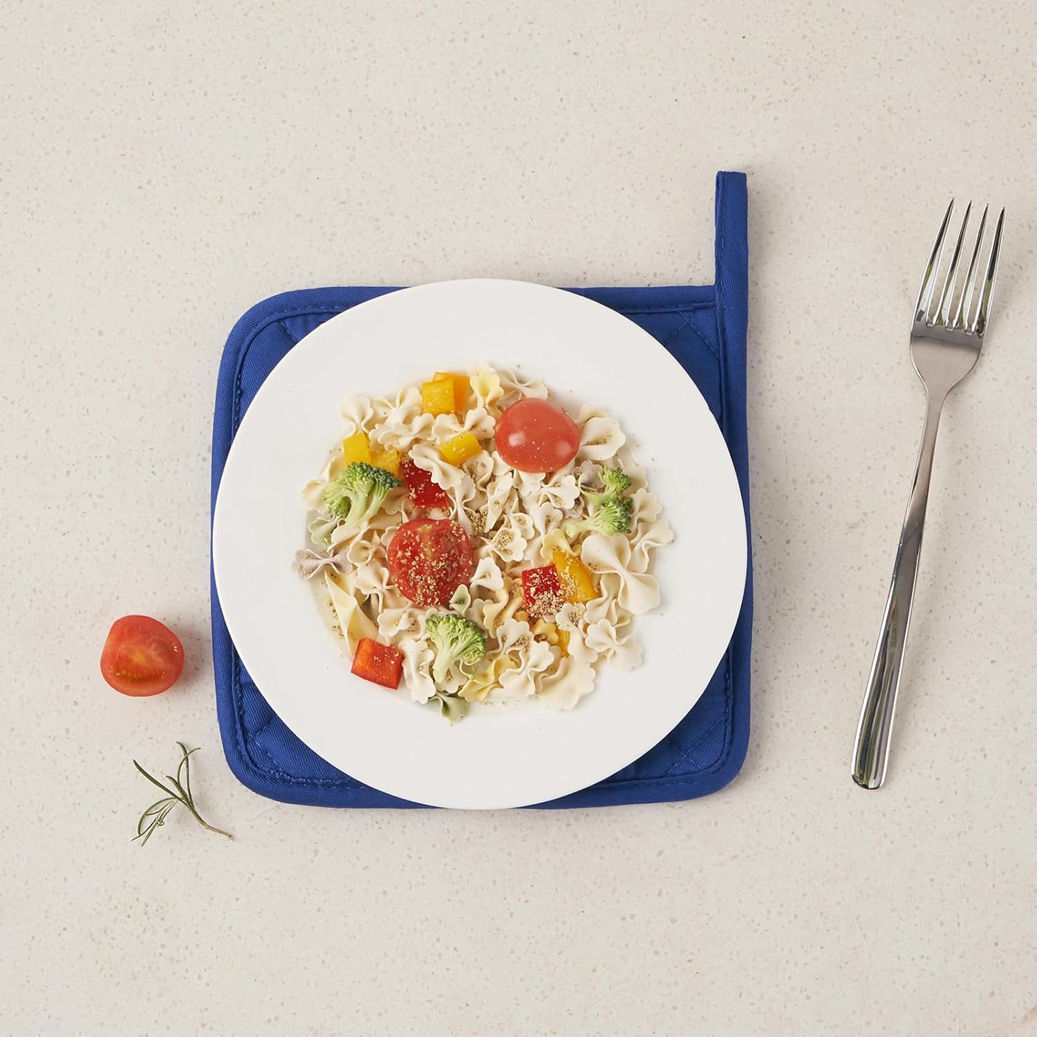 - QUILTED AND PADDED - The construction of these potholders/hot pads helps to protect your hands and arms from the heat of the oven. Quilting allows for easy flexibility in this potholder, offer durability and grip. The heat resistant material allows you to safely remove hot dishes pans, and pots from the oven.