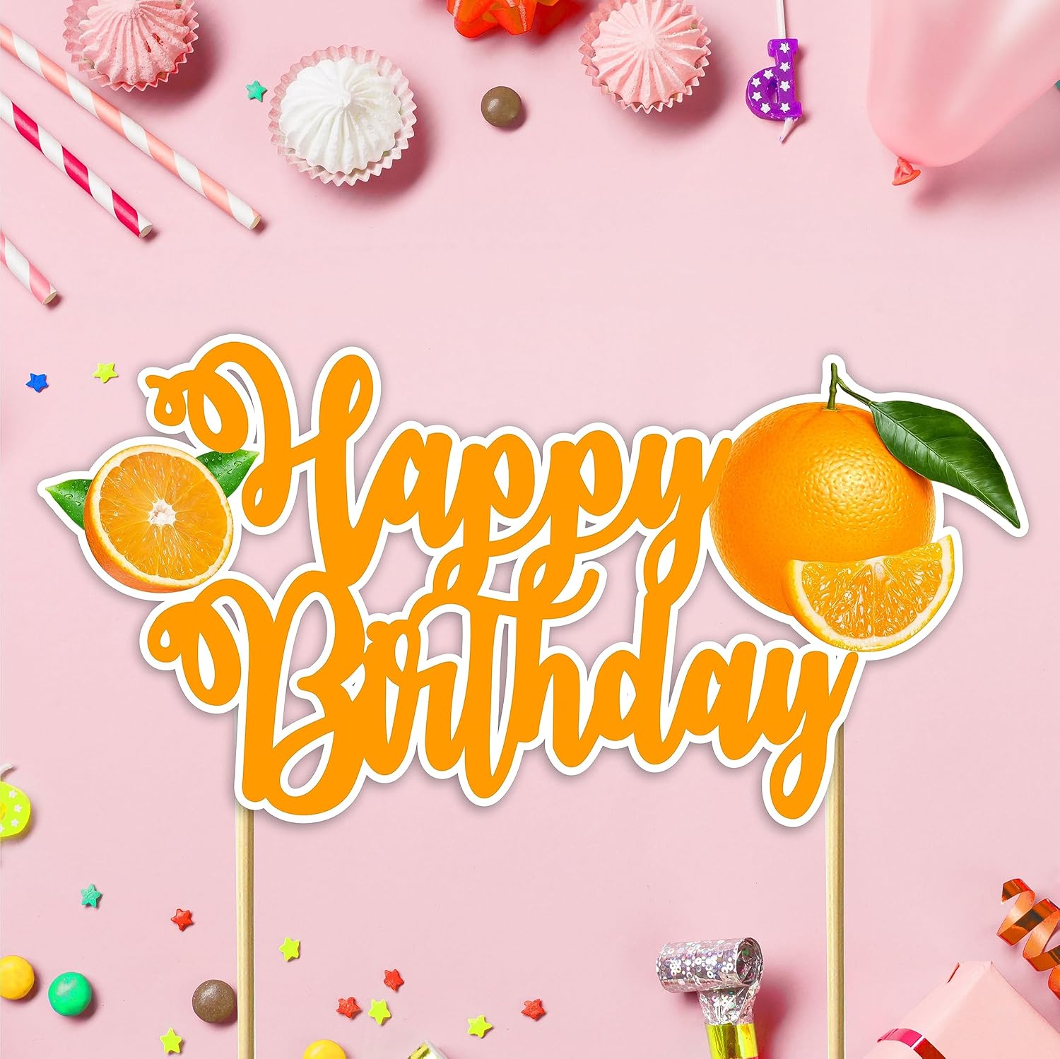 - Color : Seyal Orange Happy Birthday Cake Topper