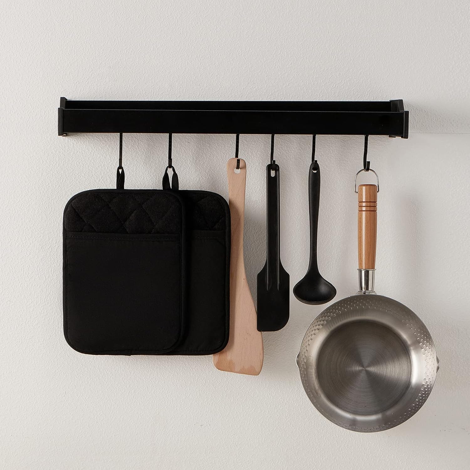 Kitchen Everyday Basic Pot Holder Heat Resistant Coaster Soft Silicone Water Resistant Pot Holder Set Oven Mitts with Pocket, 2 Piece Set, 7"x9" (Black)
