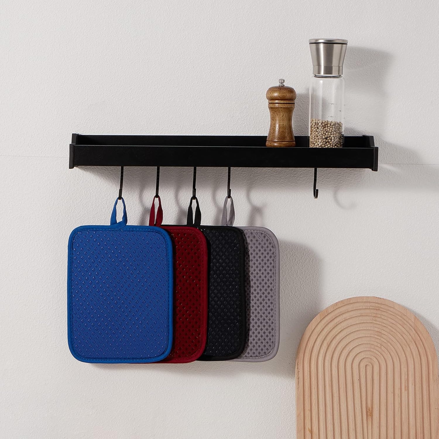 - The silicone is printed on one side of the pot holders, with a quilted backing. They are perfectly designed with a loop for easy hanging!