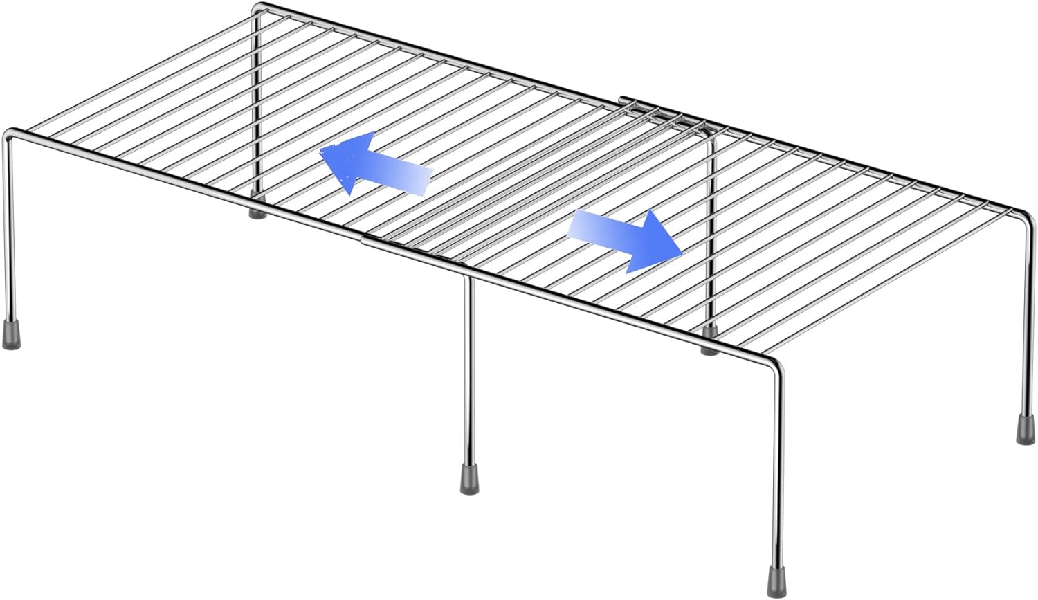 Redrubbit Cabinet Storage Shelf Rack, Expandable Metal Rustproof Kitchen Counter and Cabinet Shelf, Storage Rack Organizer Space Saver for Kitchen, Fridge, Cabinet, Bathroom, Chrome