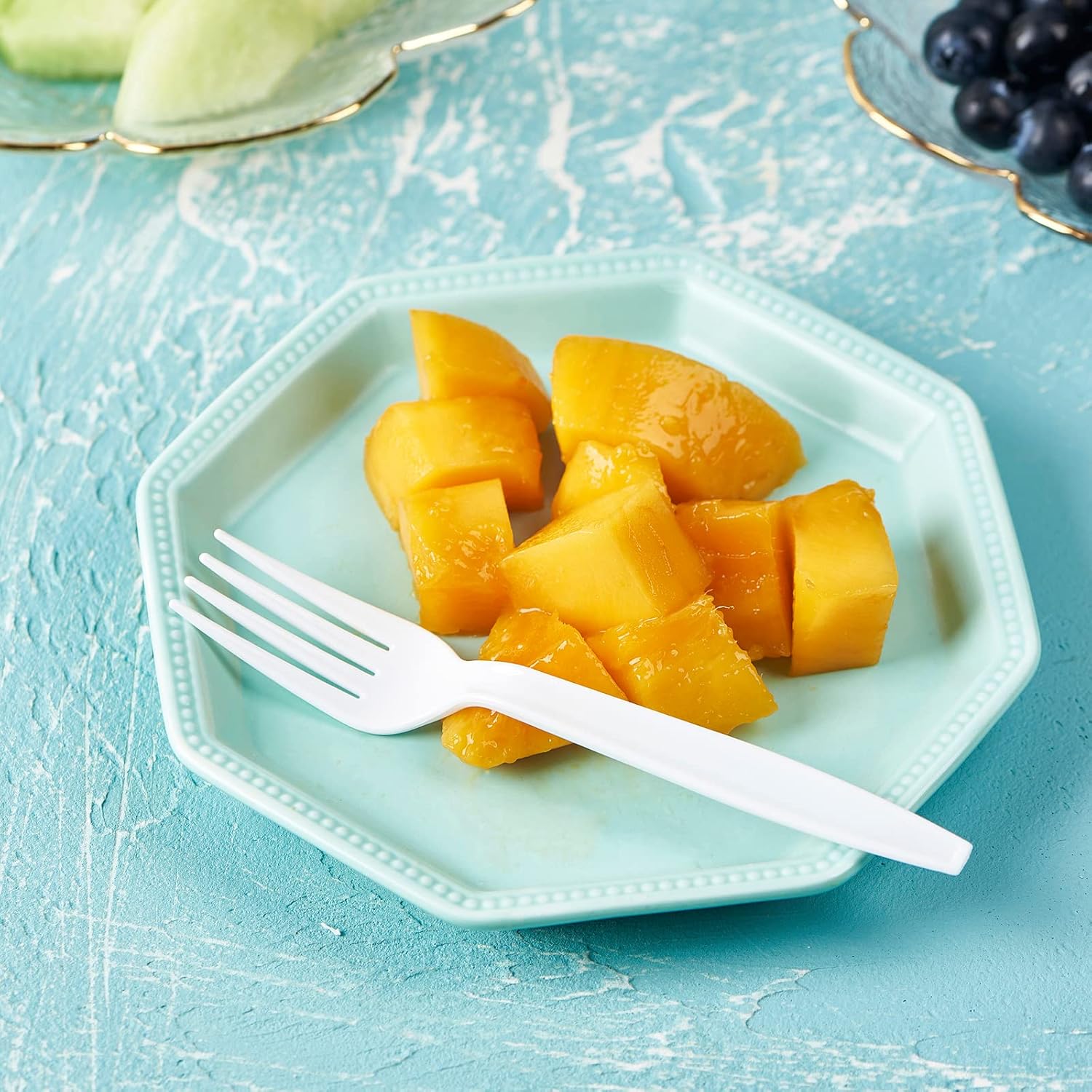 - Elegant Plastic Forks - The fancy design make the forks perfect for any event, occasion, party, weddings, picnic, or indoor and outdoor activity. with its classic white color and beautiful design pattern. Thanks to its smooth, rounded edges, the plasticware fork provides a comfortable dining experience for your customers.