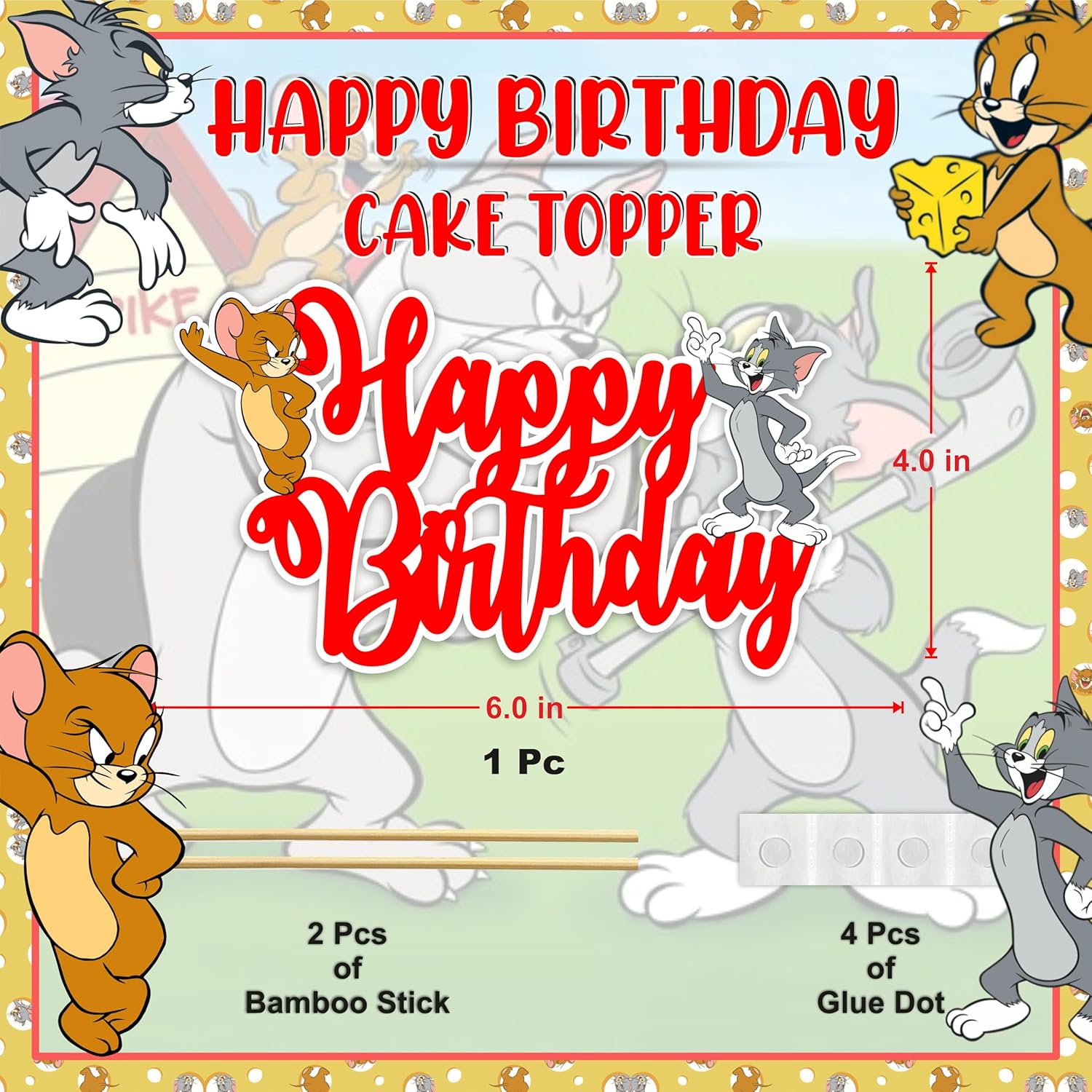 Tom & Jery Happy Birthday Cake Topper