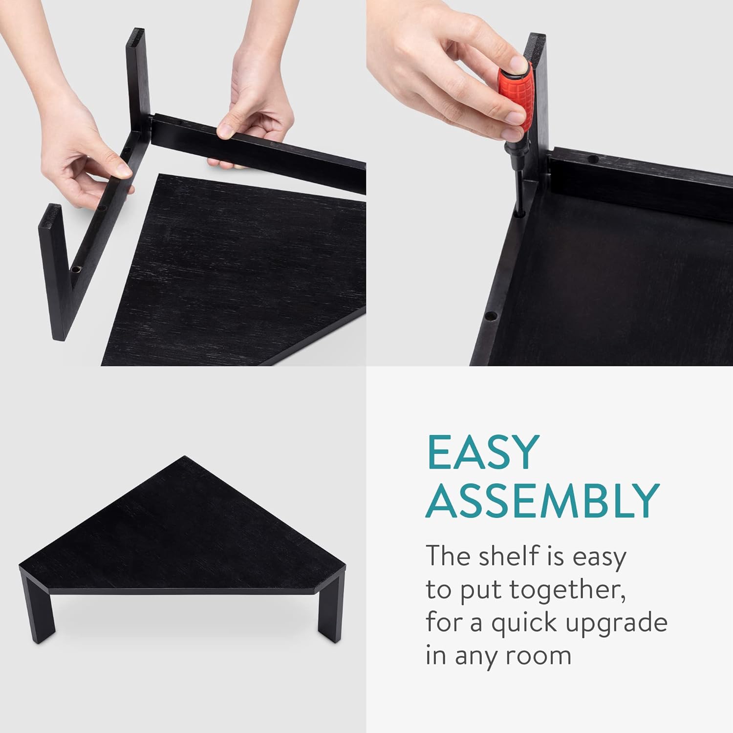Navaris Bamboo Corner Shelf Unit - Free-Standing Corner Shelf Organizer for Kitchen Cabinet Cupboard Counter-Top Storage 11.8" x 11.8" x 5.9" - Black