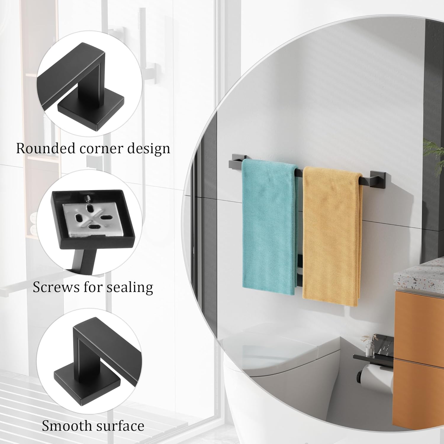 - 【Heavy Duty Design】The space saving towel holder is made of thickened and sturdy steel material, which is not easy to bend and deform, and carries a large weight of towels