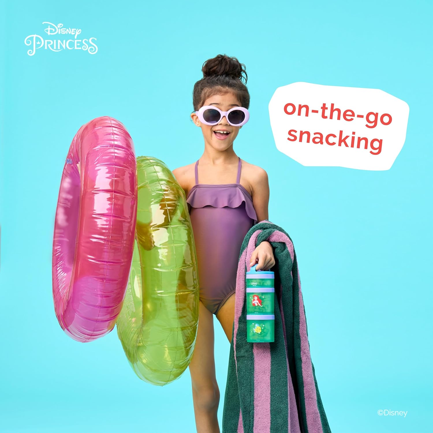 Whiskware Disney Princess Stackable Snack Containers for Kids, 3 Stackable Snack Cups for School and Travel, Ariel and Flounder