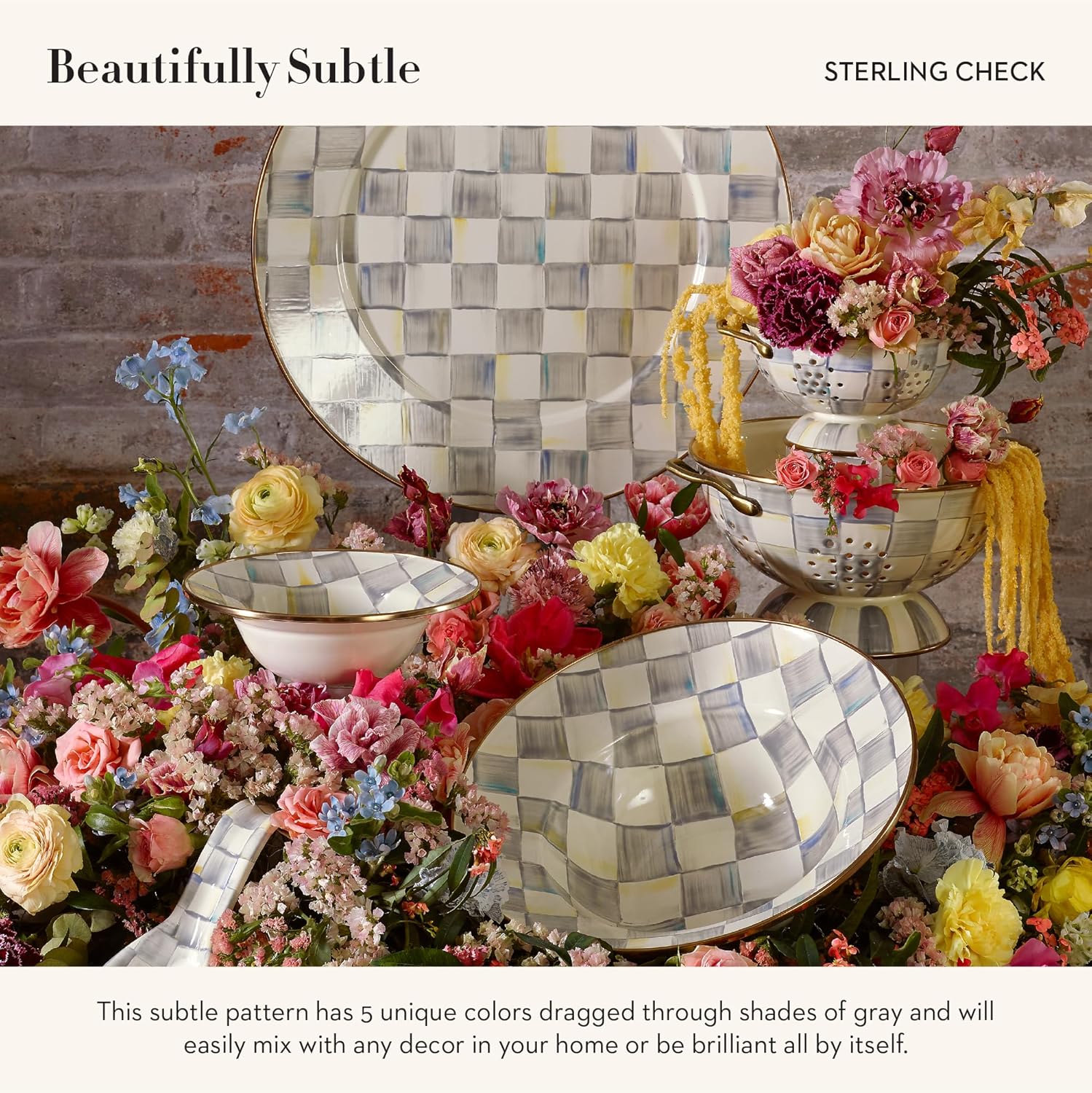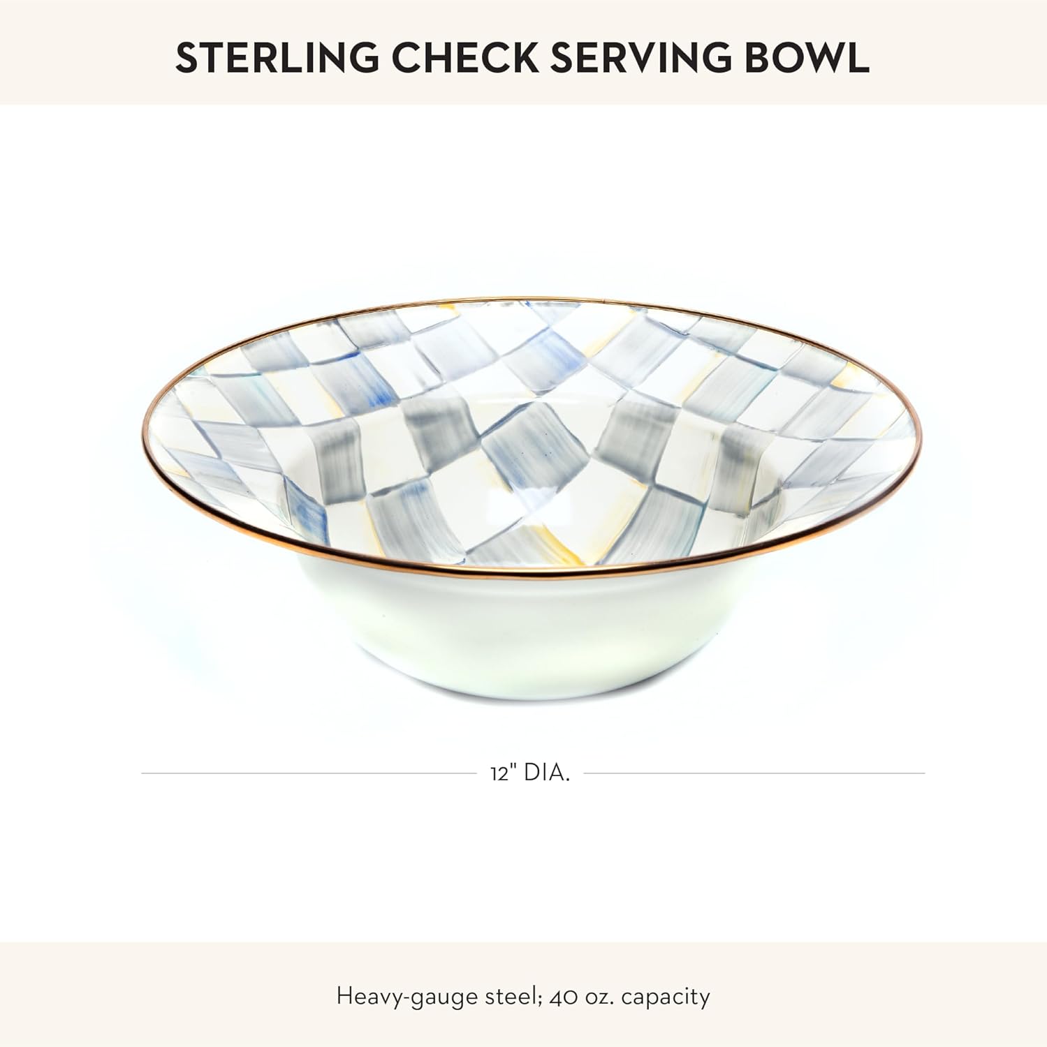 MACKENZIE-CHILDS Enamel Serving Bowl, Enamel Serveware Bowl, 12 Inches, Gray-and-White Sterling Check