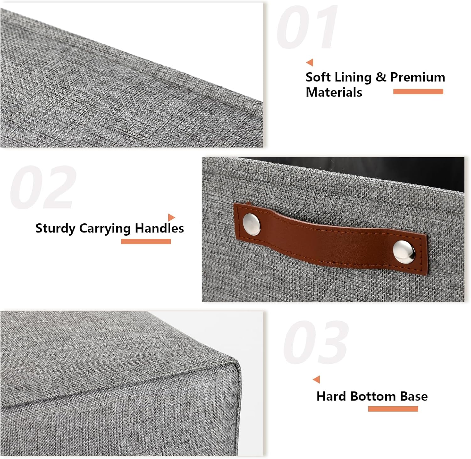 - 👏【Multi-Purpose Baskets】--- The grey baskets can be easily hidden in closets, cabinets, side tables,shelves, etc, without occupying any gaps. You can also use the organizing baskets to storage socks, underwear, books, magazines, toys, pet products, wipes, towels, decorations, office supplies, DVDs, and gifts.