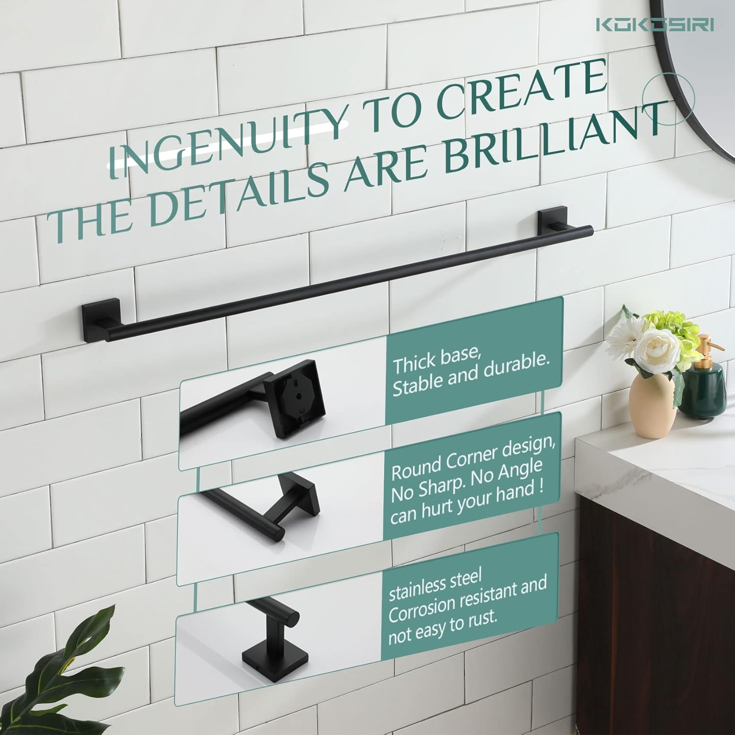 - ◄ Rustproof ► KOKOSIRI towel bar made of SUS 304 Stainless Steel (premium stainless steel). All metal design and used of high-grade steel which can resist rust and corrosion. For your health, all the materials we use are the highest quality and harmless. You can rest assured to use all of our products