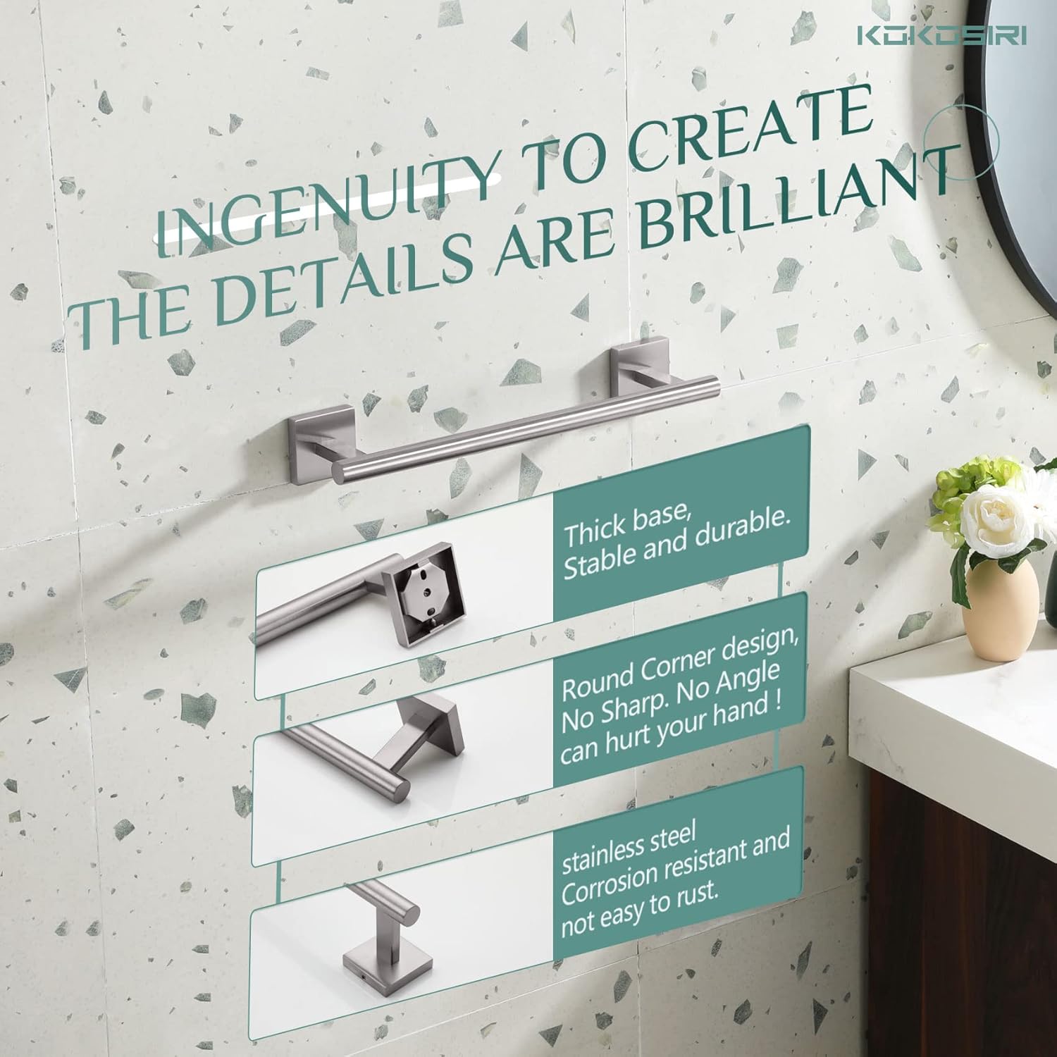 KOKOSIRI Towel Holder 12 Inch Bathroom Hand Towel Bar for Bath Kitchen Toilet Brushed Nickel Stainless Steel B4005BR-L12