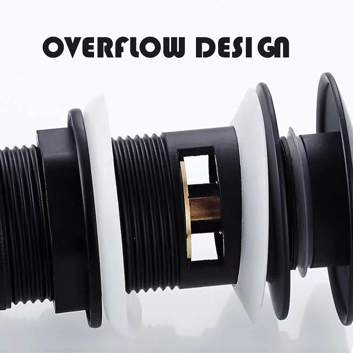 - EASY-TO-USE PUSH BUTTON:Big button pop up cap push bathroom sink drain operates using a soft-touch method simply press the top of the drain down to open it or close it, Easy bounce operation water-tight silicone Washer better sealing and more durable.