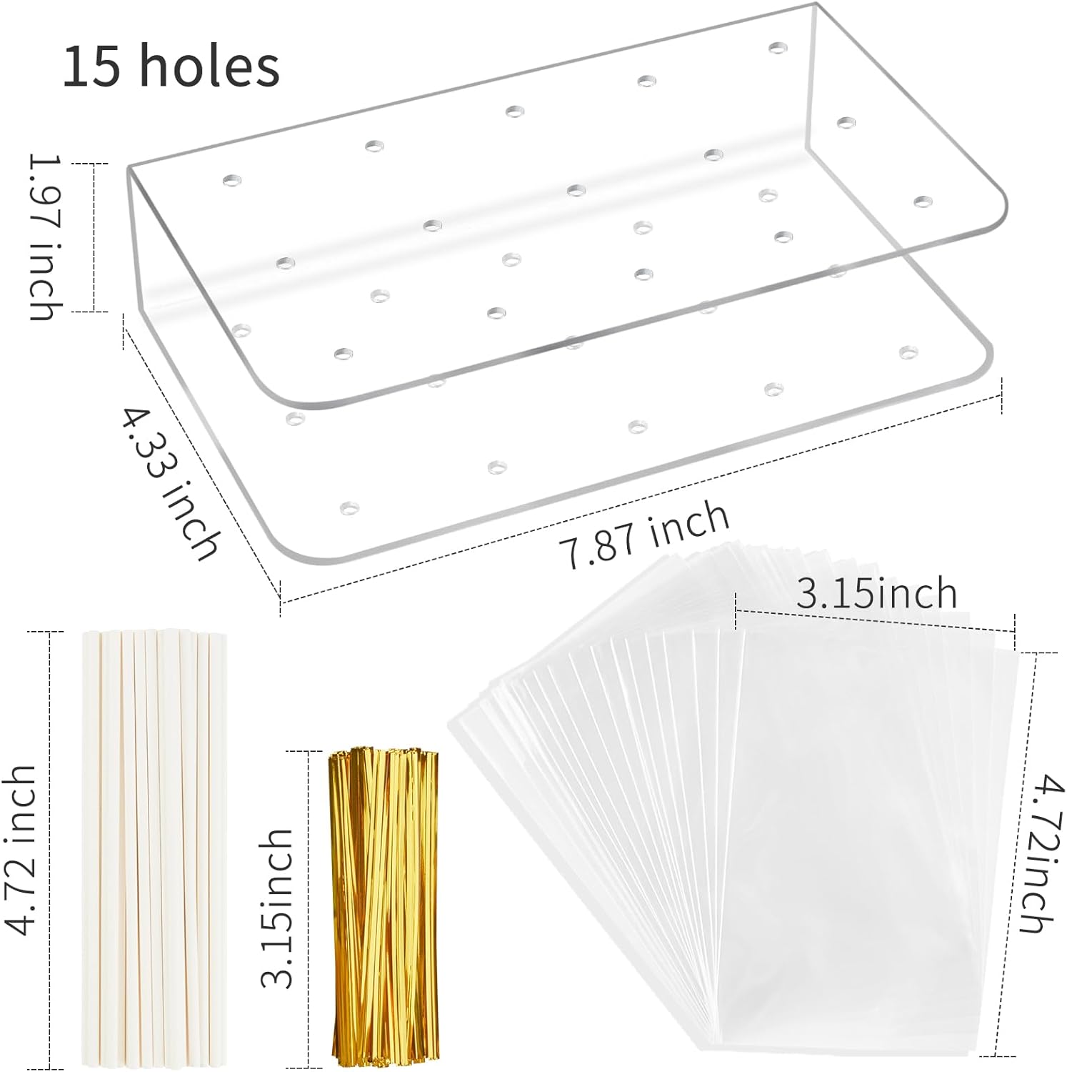 - Excellent Value: Package includes 1pcs 15-hole acrylic lollipop holder, 1pcs 12 Cavity silicone cake pop mold, 50pcs candy bags, 50pcs paper sticks, 50pcs golden twist ties.