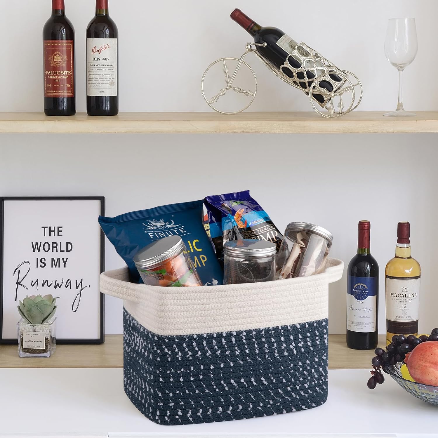 OIAHOMY Storage Basket, Woven Baskets for Storage, Cotton Rope Basket for toys,Towel Baskets for Bathroom - Pack of 3,White Blue