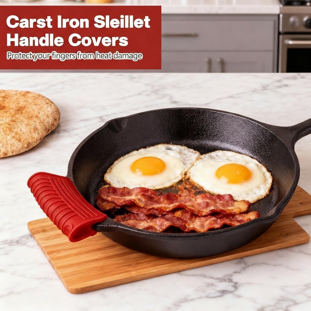 2 Pairs Silicone Pot Handle Holders,Hot Skillet Handle Covers,Anti-Slip Silicone Cast Iron Pans Handles,Pan Lids Dutch Ovens Baking Sheets Casserole Cookware