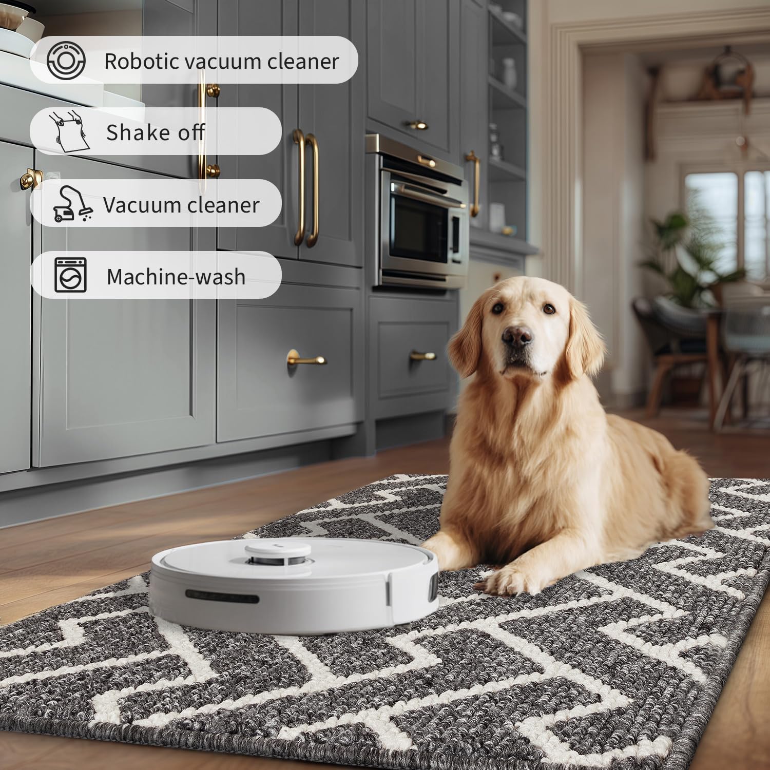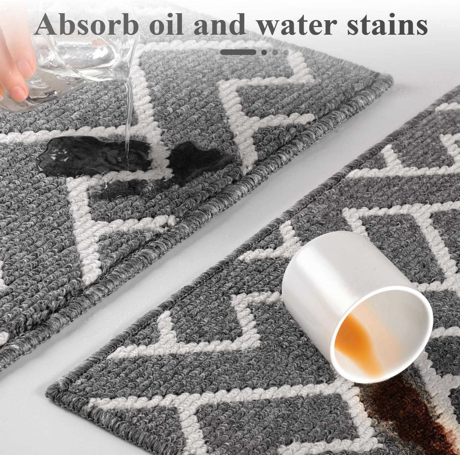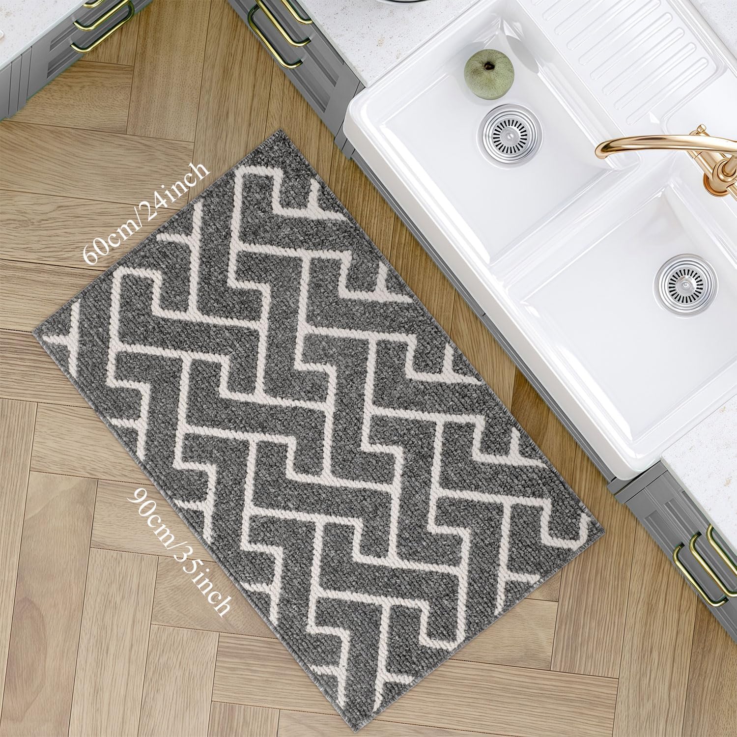 hicorfe Kitchen Rugs and Mats Sets,Super Absorbent Polypropylene Non-Slip Rug,Soft Comfort Floor Mat,Washable for Kitchen,Hallway,Office,Sink,Laundry(24" x 35",Grey)