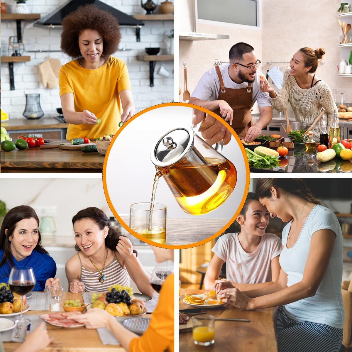 - [ SAFE TEAPOT] glass tea kettle for gas stove top,This teapot kettle is made with borosilicate glass.Heat-resistance from -20 to 150 degrees Celsius. your tea infusion will be of no harmful chemicals, plastic leaching and aftertaste. The tea pot is stovetop safe, microwavable and dishwasher safe.