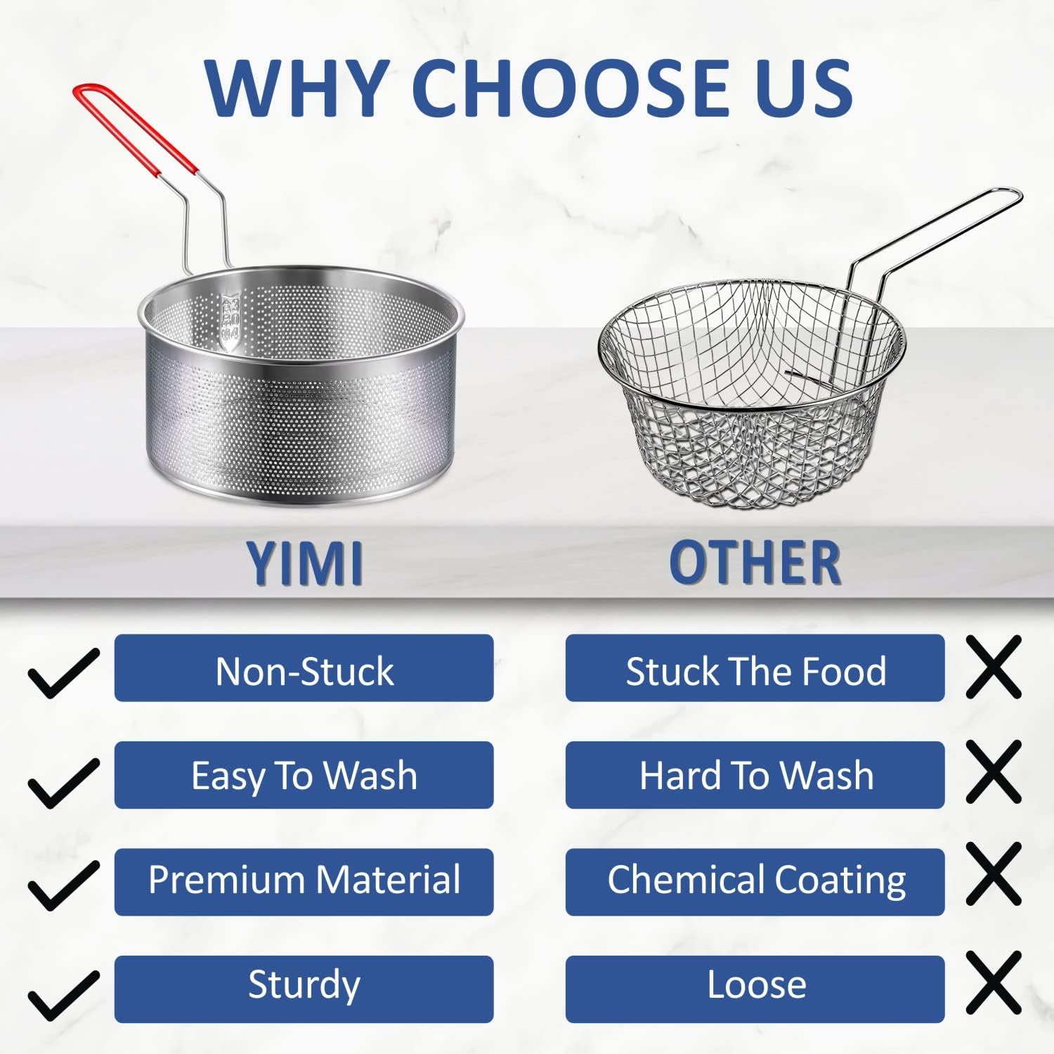 - Convenient Storage - The yimi fryer basket handle has a convenient hanging design. Simply hang it on the wall for storage. If you are looking for a practical gift, our deep fry basket is your best choice. 30-day money back or exchange guarantee are provided. You have no risk to try!