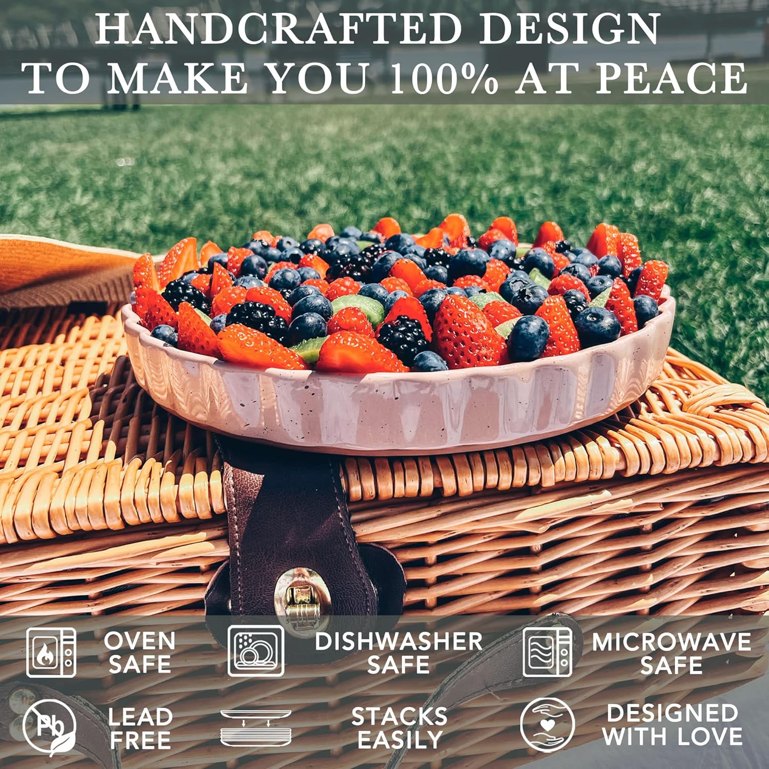 - CRYSTALLIZED GLAZE: Our glaze is lead free, cadmium free, and extra strong to prevent scratches from your metal utensils. Only we produce a crystallized glossy glaze that is strong enough to resist scratches under 1000 grams of pressure. Our smooth glaze allows for easy cleanup, and as always our products are microwave, oven, freezer, and dishwasher safe.