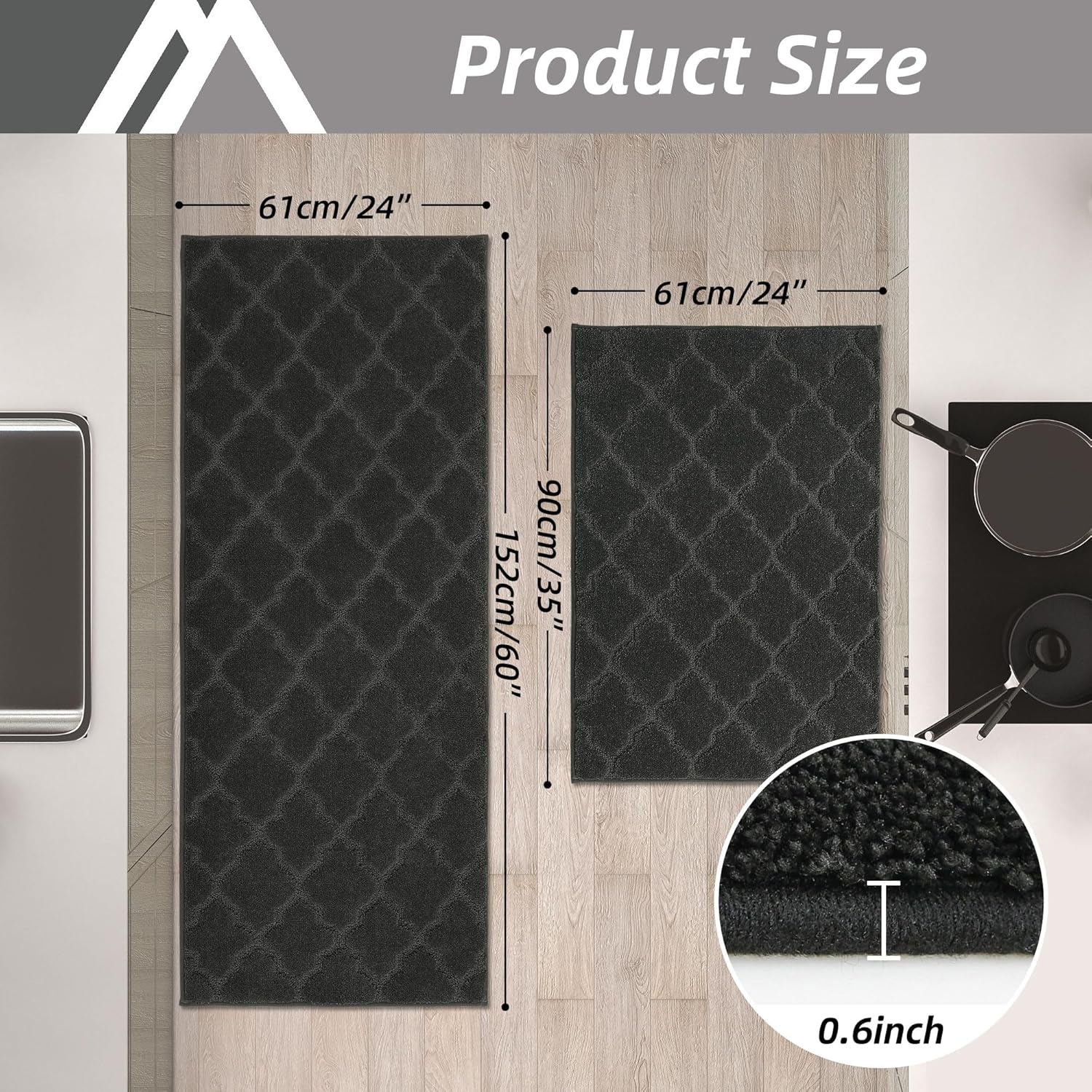 - Super Absorbent: The floor mat is made of polyester, which is durable and the surface is not easy to get dirty. It can perfectly absorb the water splashed by kitchen cooking and dining