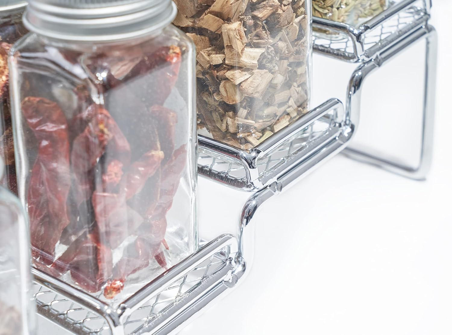 - Functional Organizer: These racks can hold 48 spice jars; The 4 step levels make it easy to locate and quickly grab what you need; Each steps is 3 inches deep to provide plenty of room to organize spice jars, cans, vitamins, medicine bottles, sauces, jelly jars, and more