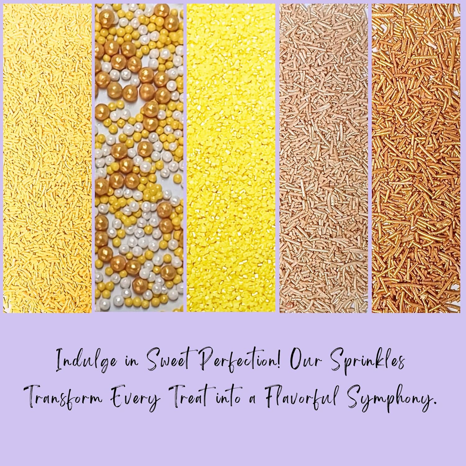 - Confect Sprinkles are made with the finest quality Ingredients & are soft to chew Sprinkles come in a unique pack of 5 assorted colors and sizes.