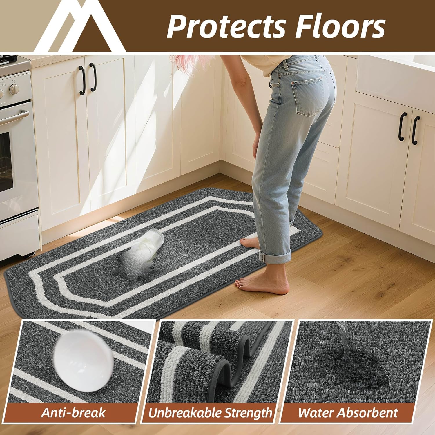 COSY HOMEER Long Kitchen Floor Mats for in Front of Sink Super Absorbent Kitchen Rugs and Mats 24"x48" Non-Skid Kitchen Mat Standing Mat Washable,Polypropylene,Dark Grey,Frame