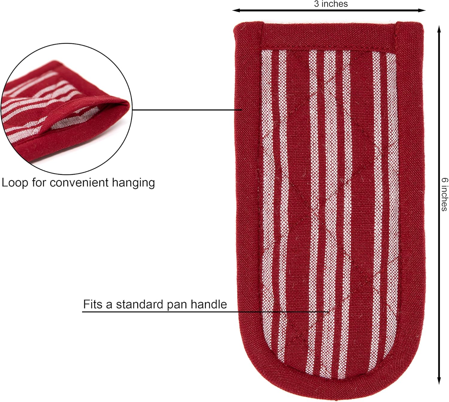 Sticky Toffee Pan Handle Covers for Cast Iron Skillet, Set of 2, Red Heat Resistant Sleeves, 3 x 6 in, Oeko-Tex Cotton Hot Pot Holders