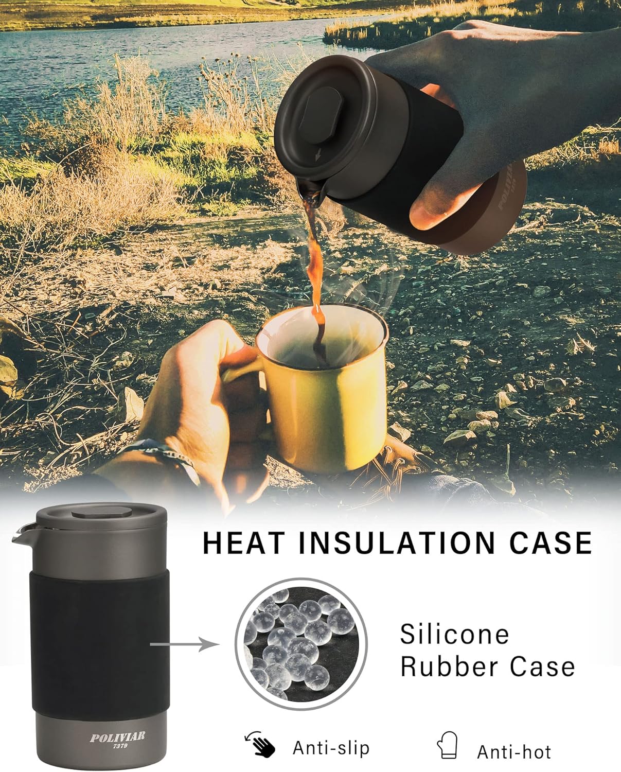 POLIVIAR French Press Coffee Maker, 12 oz Portable French Press with Mini Canister and Collection Bag, Double Wall Insulation & Dual- Filter Screen, Food Grade Stainless Steel for Coffee