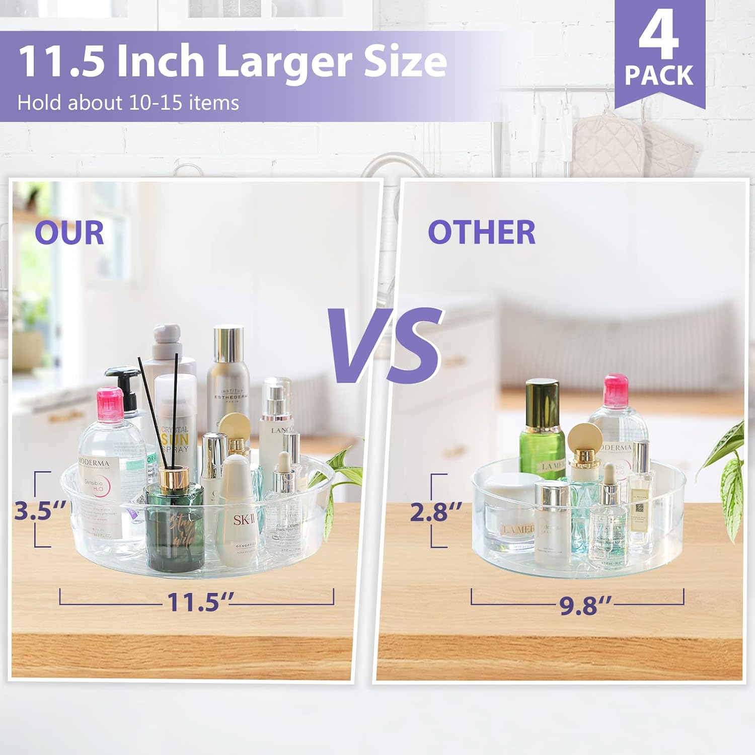 GUZON 4 Pack Lazy Susan Organizer for Cabinet, Upgraded 11.5" Clear Lazy Susan Turntable with Handles and Raised Edge, Rotating Spice Storage for Kitchen, Pantry, Refrigerator, Bathroom, Table
