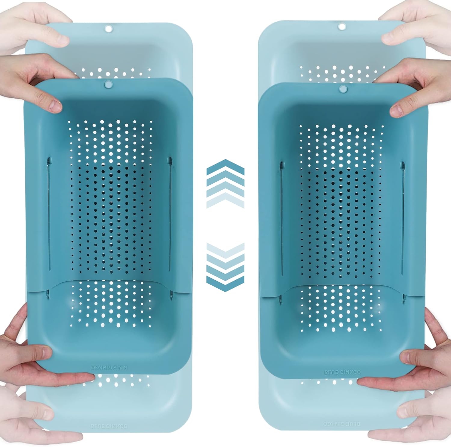 BLUE GINKGO Sink Colander Baskets - (Pack of 2) Wash Vegetables and Fruits, Drain Cooked Pasta and Dry Dishes - Extendable - New Home Kitchen Essentials (2 Teal)