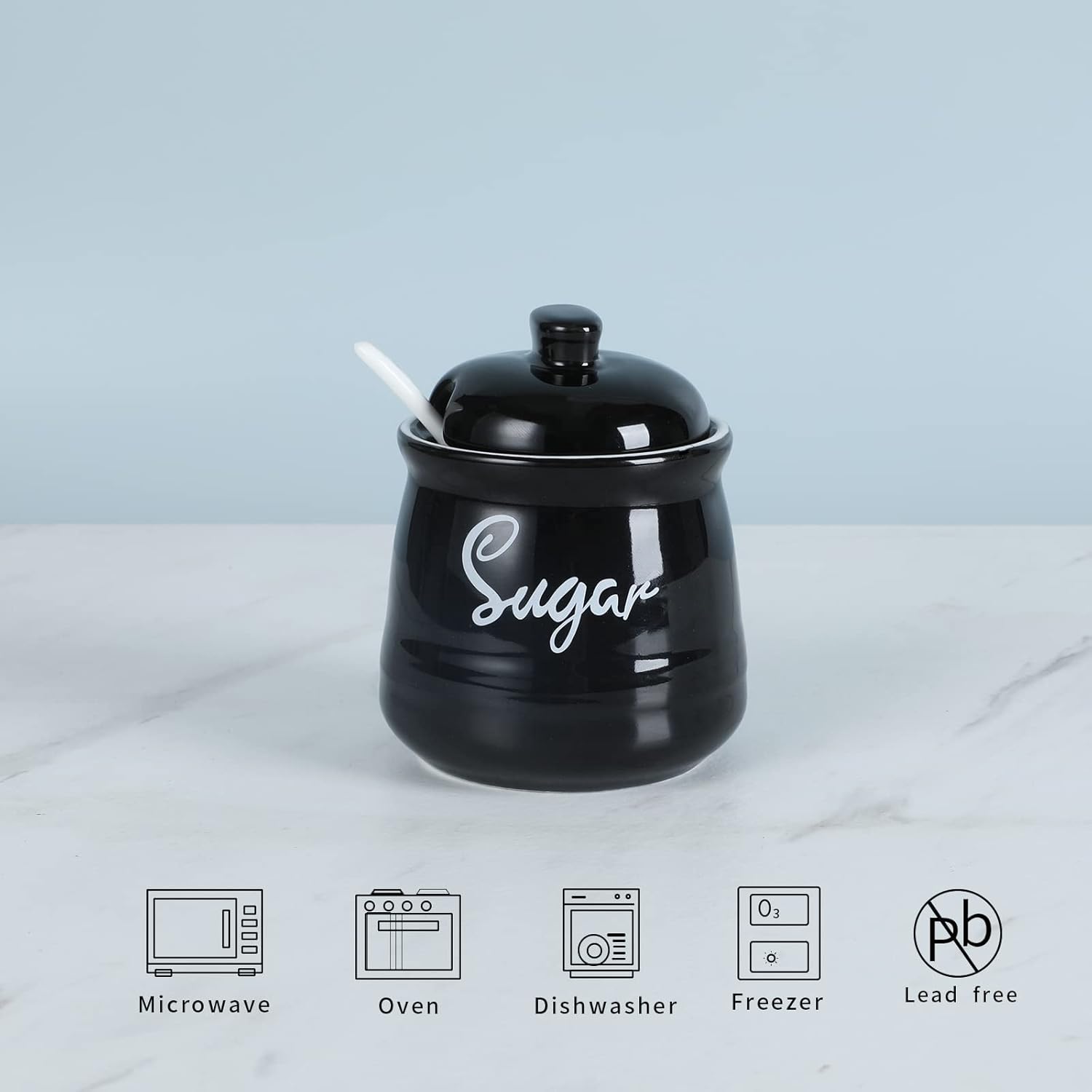 - PERFECT COMBINATION: This sugar bowl is equipped with a perfect lid and a small spoon. The lid can keep your ingredients away from dust. There is a perfect notch on the lid for placing the spoon, so you donβt have to worry about placing the spoon randomly
