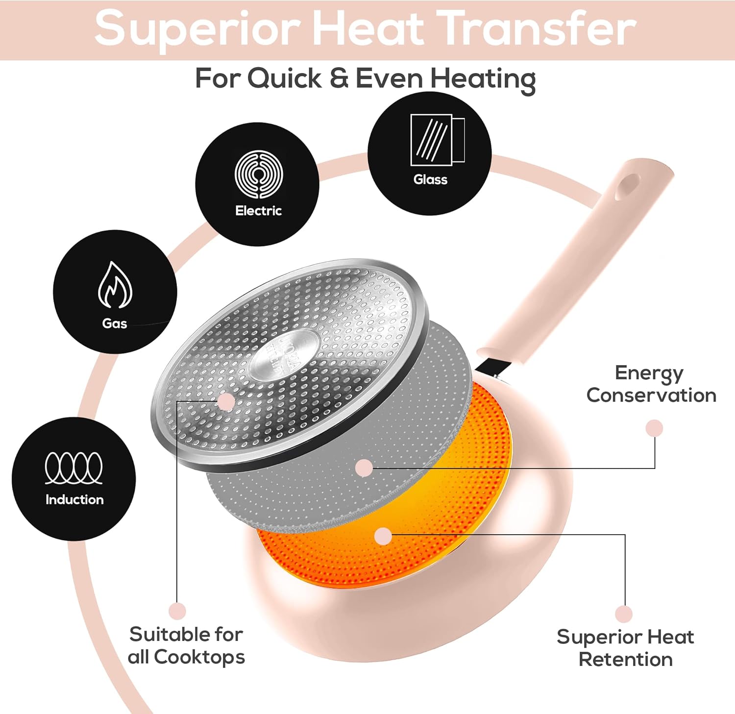- HARBORING A CULINARY HAVEN β Explore new recipes and savor the delectable aroma, with the impeccably fabricated, nonstick even-heat distributed frying pans, ideal for all types of cook-tops, be it electric or ceramic.