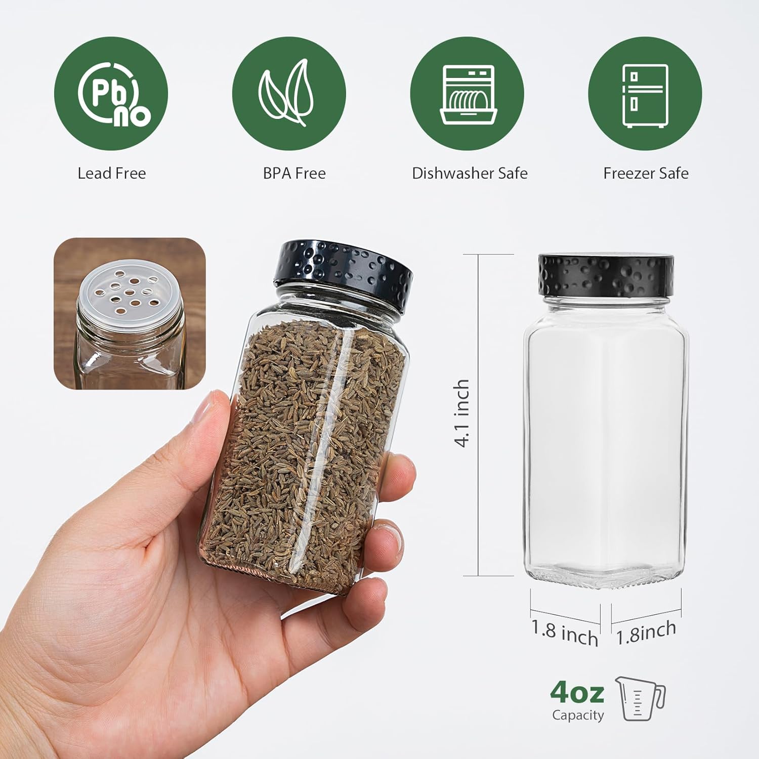 - PREMIUM QUALITY - Made from high quality glass, Lead-Free and BPA free. Dishwasher safe. Black lids and shaker tops should be hand wash ONLY.