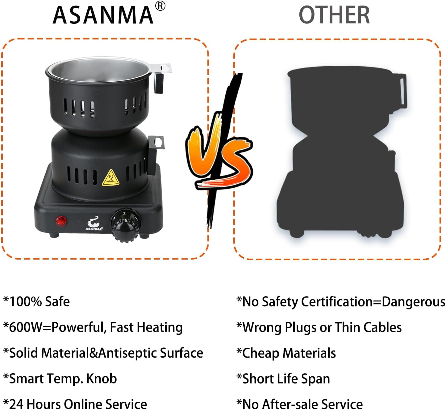 - ASANMA electric stove is 100% safe to use, also have overheating & circuit protection.When heating temperature too high,automatic trip protection.(NOTE: please do not leave when you use it)